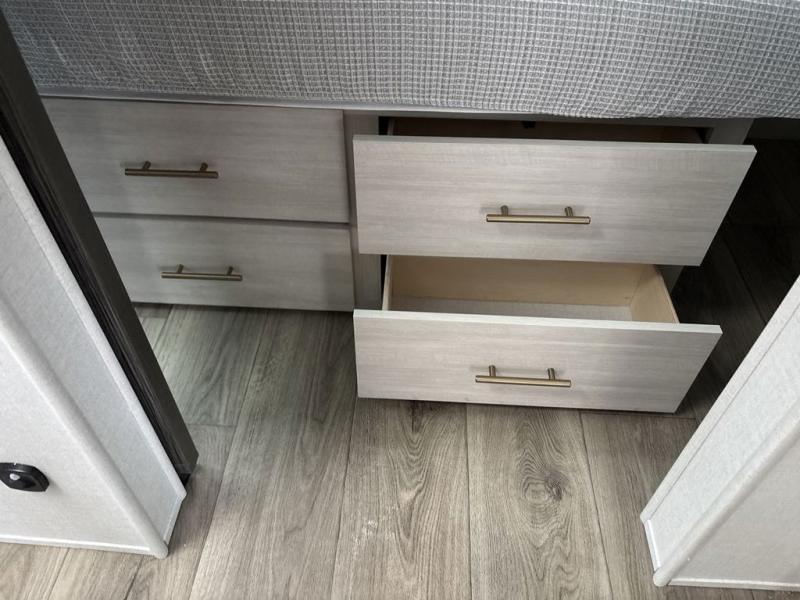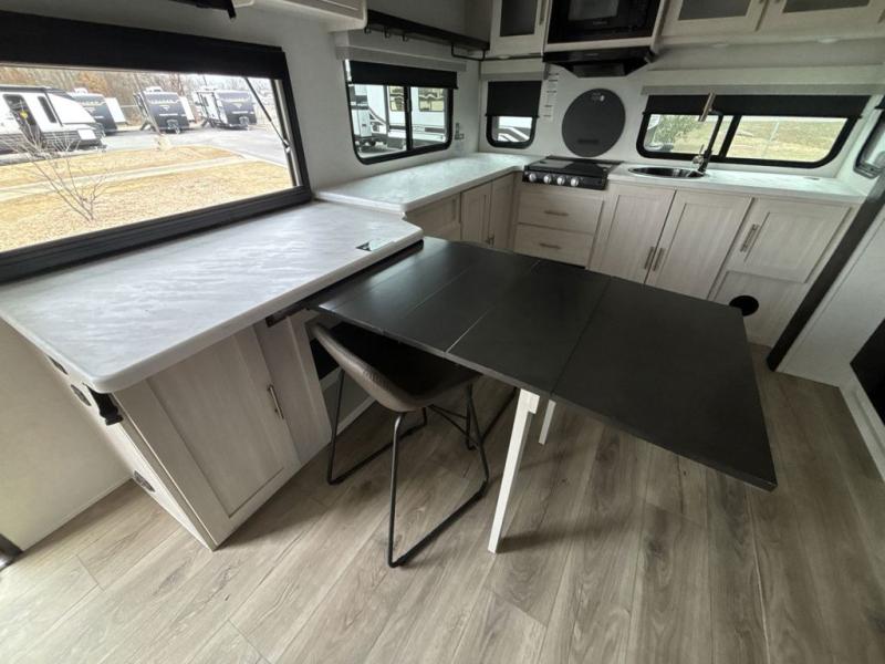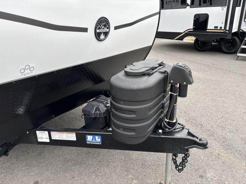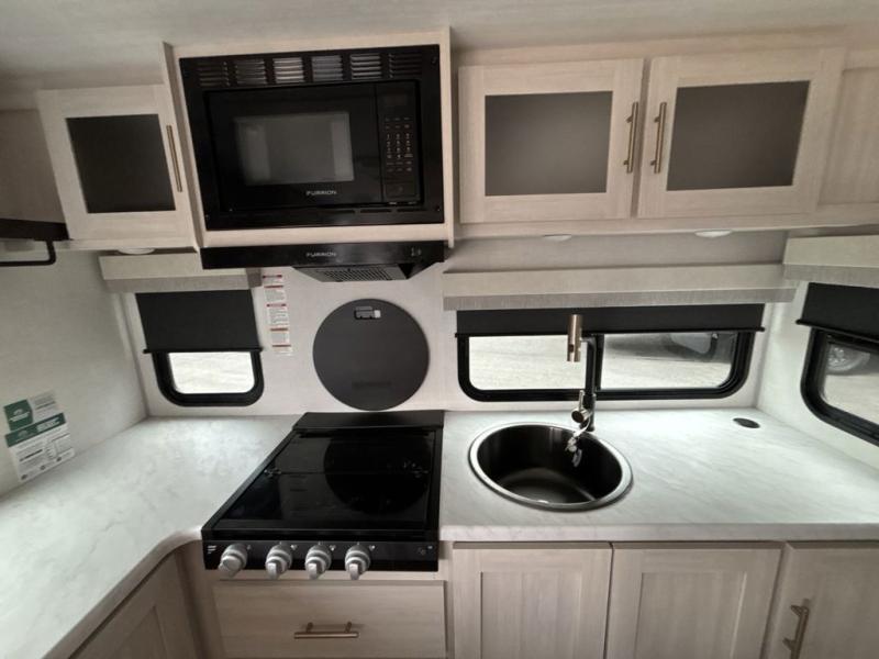 The Forest River Un-Mapped travel trailers deliver an unparalleled travel experience thanks to their incredible features, starting with the aluminum-framed floor with block foam insulation that ensures exceptional structural integrity and thermal efficiency, along with the sealed underbelly with forced heat & radiant foil barrier that provides superior insulation and heat management, and the power tongue jack facilitates easy maneuvering and stabilization of the trailer. Plus, the 30 Amp charge controller with solar inverter prep is ready for integration with solar power systems, catering to eco-conscious travelers seeking off-grid capabilities. Inside, you will find seamless Surf-X kitchen countertops that offer a sleek, durable surface and are easy to maintain for busy travelers. Further, the blackout roller shades will add privacy and light control for restful nights and cozy daytime retreats.