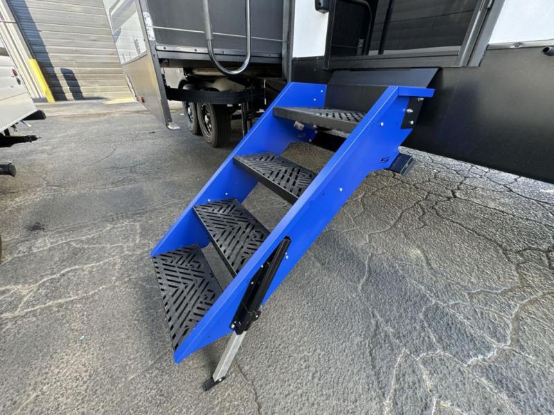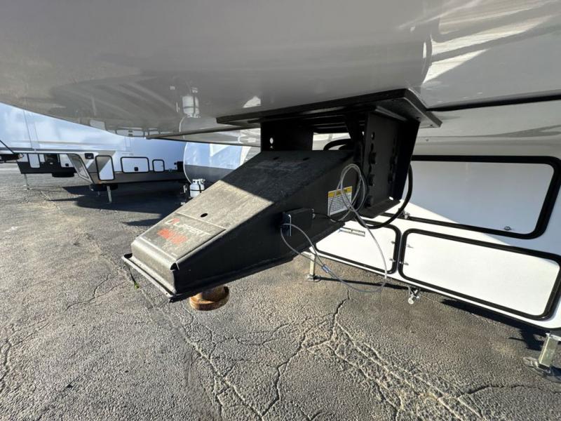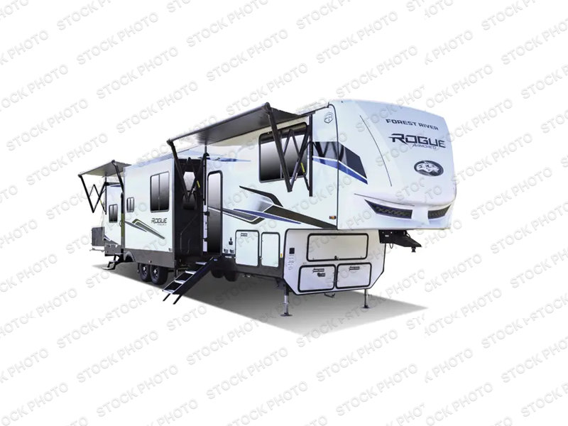 Every one of these Forest River Vengeance Rogue Armored fifth wheel toy haulers come with the features you want most at an affordable price tag! The DuraPoxy gas/oil resistant floor has 5,000 lb. tie downs to ensure your toys will arrive safely without damaging the flooring, plus the 3,000 lb. rated ramp door makes it easy to load them. Two 15,000 BTU A/Cs are "Super H Ducted" to keep you cool even on the hottest summer days, and the heated enclosed holding tanks help protect against the elements. Each model also includes a 6-point leveling system, dual LED cargo lights, solar reflective windows, and a tire pressure monitoring system. Inside, you'll enjoy the solid surface countertops, glass shower door, zebra shades in the living room, and stainless-steel multi-purpose sink to name a few comforts!