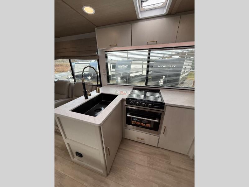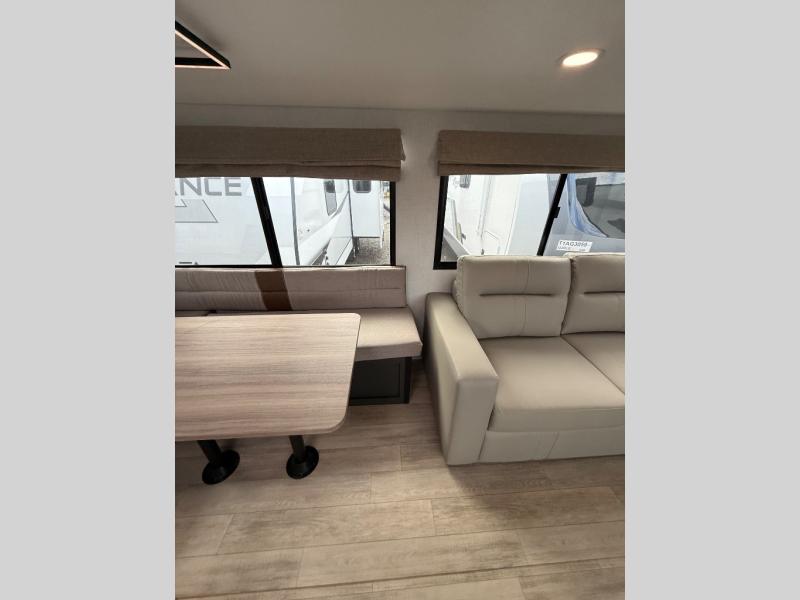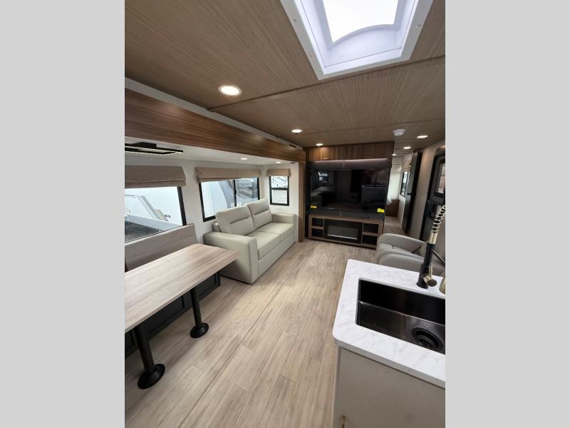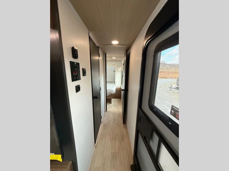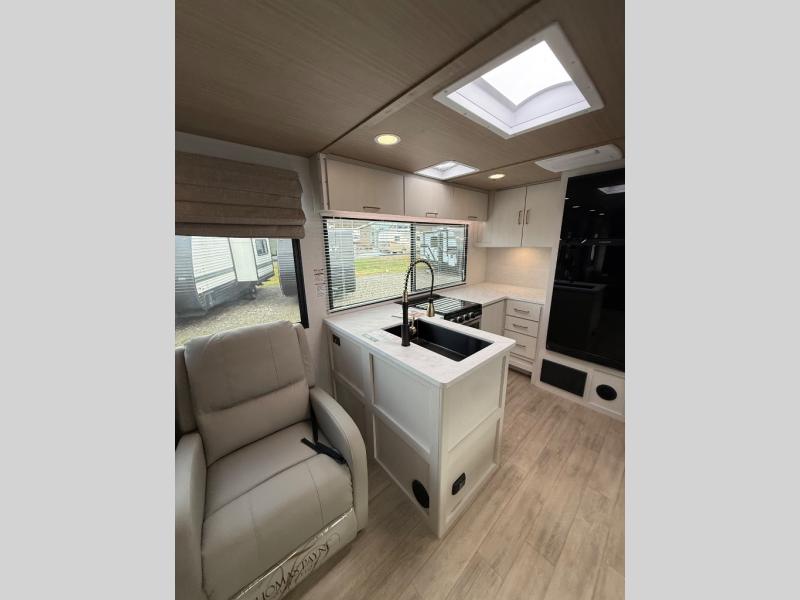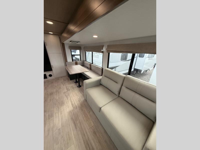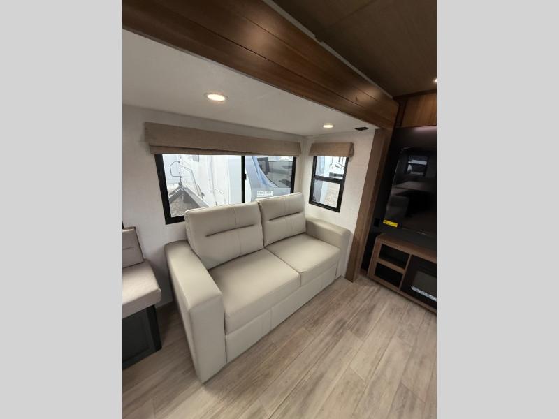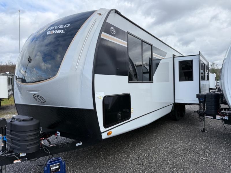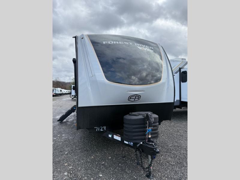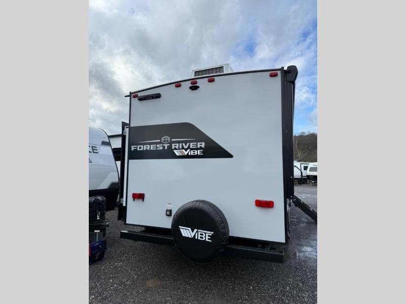 With any Vibe travel trailer by Forest River, you will enjoy comfort at every turn! There is a Norco huck-bolted steel frame, an enclosed underbelly with 12V heating pads, and a PVC roof membrane for added durability. You will also find a universal docking station outside, along with slam latch doors, and the largest square windows in its class. Inside, you'll find a 6' 8" ceiling height, an oversized residential-style sink, no carpet for easier cleaning, plus premium residential-style furniture for all around comfort. Each model is also prepped for a back-up camera, an On-The-Go ladder attachment, and solar power, allowing you to upgrade your travel trailer if you choose!