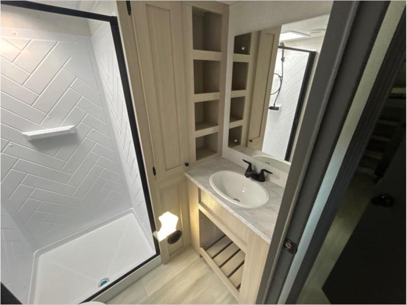 With any Wildcat fifth wheel by Forest River you will enjoy affordable luxury at every turn. These models are constructed with residential fiberglass insulation in the roof and floor, a 4'x6' sectioned underbelly armor, and a vacuum bonded, welded aluminum structure for added strength and durability. You will also find seamless roto-cast holding tanks, an outdoor shower, and 4-point auto leveling for quick and easy setup. Each model includes a best-in-class, high-efficiency 35,000 BTU furnace, along with an electric fireplace with thermostat control and remote, plus a 60,000 BTU tankless water heater for added convenience. There are carpet-free living spaces, residential backsplash, motion lighting throughout, and many more comforts!