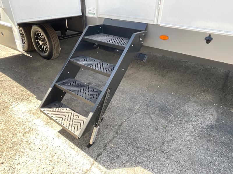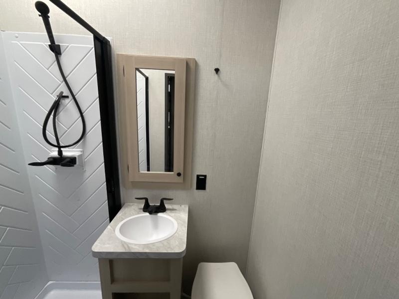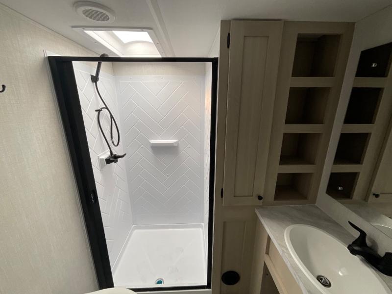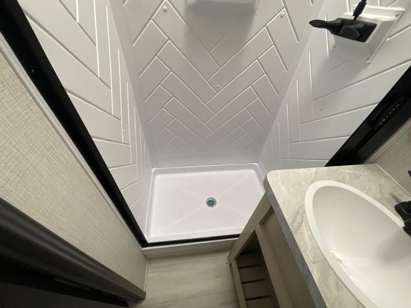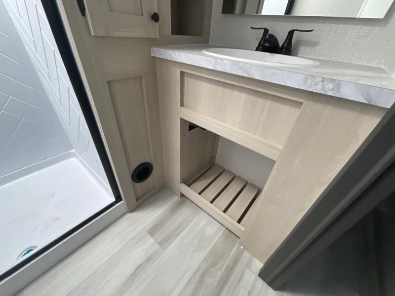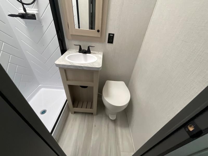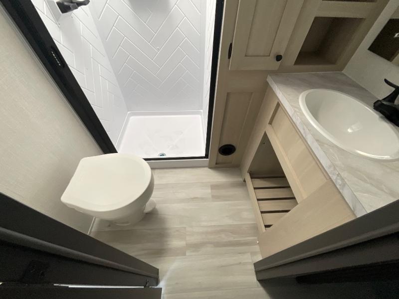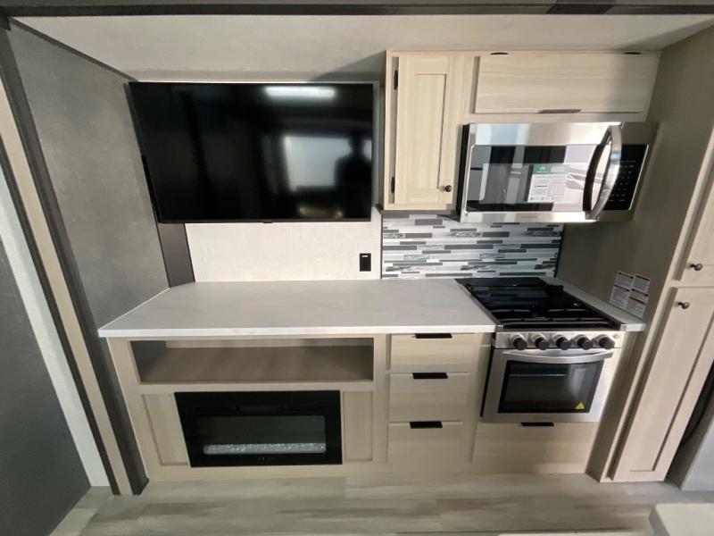 With any Wildcat fifth wheel by Forest River you will enjoy affordable luxury at every turn. These models are constructed with residential fiberglass insulation in the roof and floor, a 4'x6' sectioned underbelly armor, and a vacuum bonded, welded aluminum structure for added strength and durability. You will also find seamless roto-cast holding tanks, an outdoor shower, and 4-point auto leveling for quick and easy setup. Each model includes a best-in-class, high-efficiency 35,000 BTU furnace, along with an electric fireplace with thermostat control and remote, plus a 60,000 BTU tankless water heater for added convenience. There are carpet-free living spaces, residential backsplash, motion lighting throughout, and many more comforts!