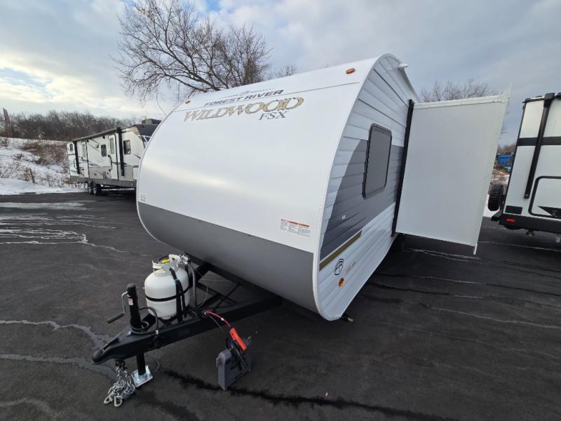 The Forest River Wildwood FSX travel trailers and toy hauler travel trailers are ultra comfortable and lightweight, perfect for first time or seasoned campers alike! You will love how easy it will be to relax with residential features that will make your space feel just like home, and the durable construction means you can enjoy your RV for years to come. There are a wide variety of floorplans to choose from, including couple's trailers, bunk models, and toy haulers, all with full bath and kitchen amenities and plenty of storage for all your gear!