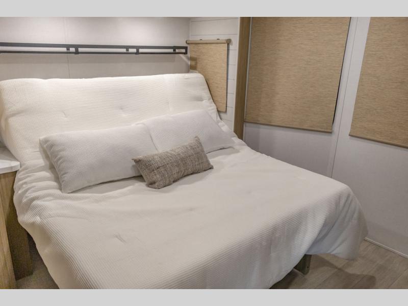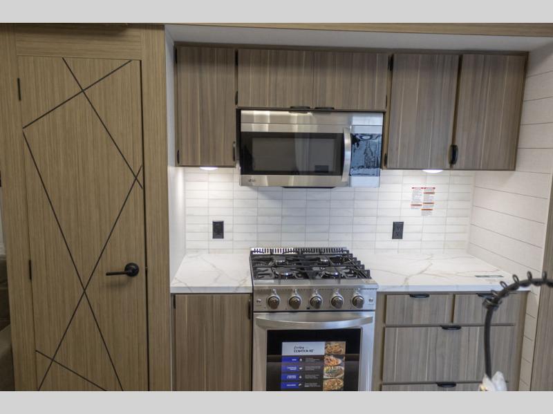 With any Wildwood Grand Lodge destination trailer by Forest River, you can enjoy extended stays wherever you go! There is 4K awning blade lighting outside, along with Tufflex PVC roofing, plus a heated and enclosed Accessibelly for added protection. Inside, you'll love the stylish backsplash update, elegant curtain rods and curtains, TFL black walnut entertainment shelves, and stainless-steel kitchen appliances. A Serta mattress in the bedroom(s) will provide comfort to each journey, and there is a tankless water heater for hot water when you need it.