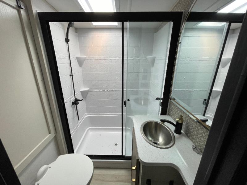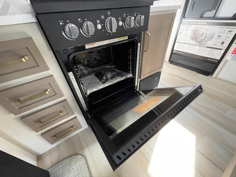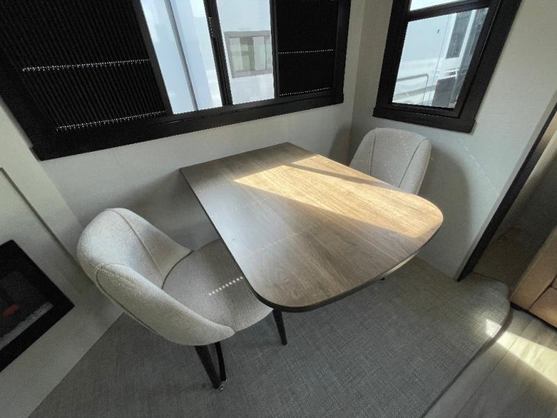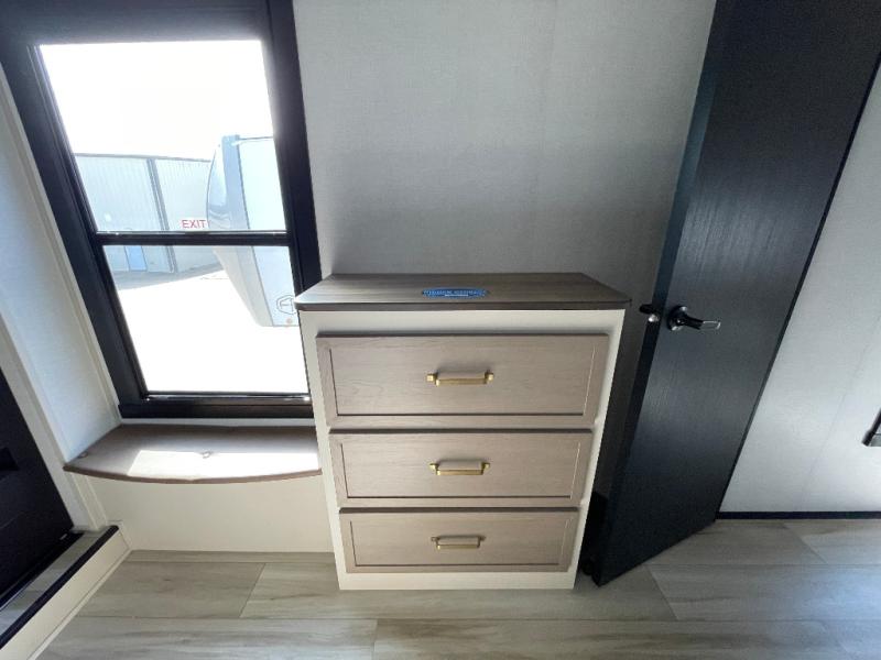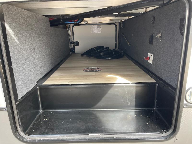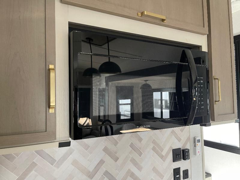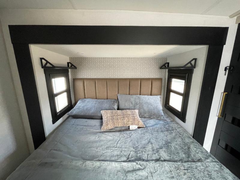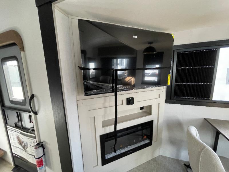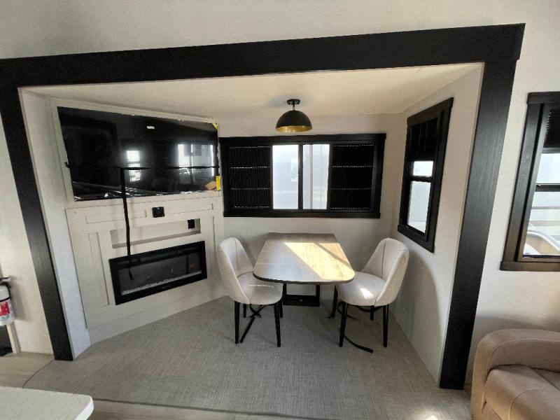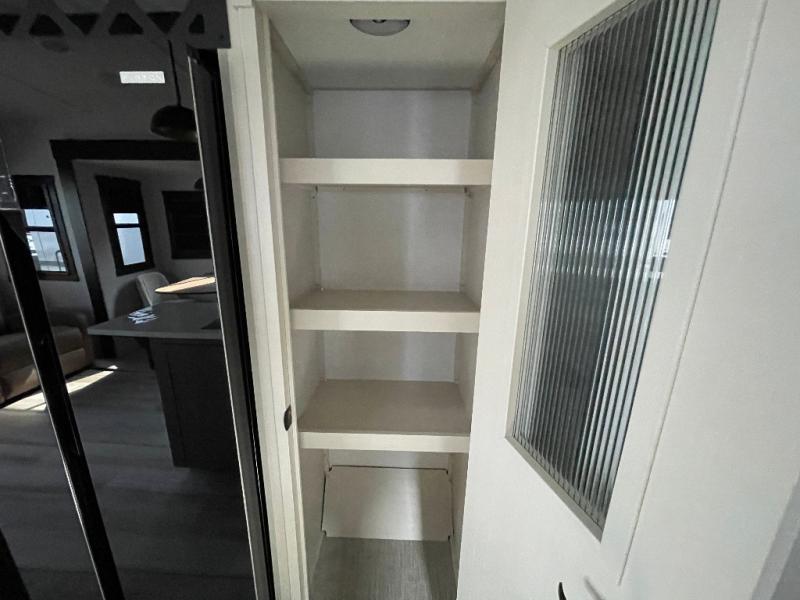 Whether you enjoy being outside or inside, this Wildwood Heritage Glen fifth wheel gives you the best of both! Imagine relaxing in a chair or on the tri-fold sofa and being able to look out panoramic windows at the scenery. Or, you might like to watch a show on the 50" LED TV with a fireplace below, and you can dine at the table and chairs that allows you to move the chairs if needed. The 16-cubic foot 12V refrigerator next to the pantry will allow you to stock up on ingredients and cold beverages for a long trip, and you will appreciate the custom king bed slide and the residential walk-in shower after being outside all day, even if just under the 13' awning. There is plenty of storage in the master bedroom and throughout, plus the XL Texas size pass-through compartment will surely come in handy for your charcoal, outdoor games, and such.