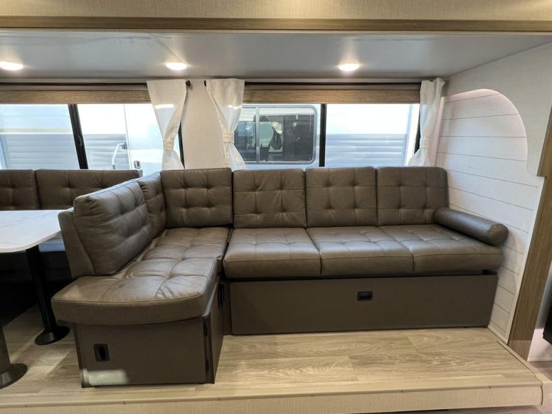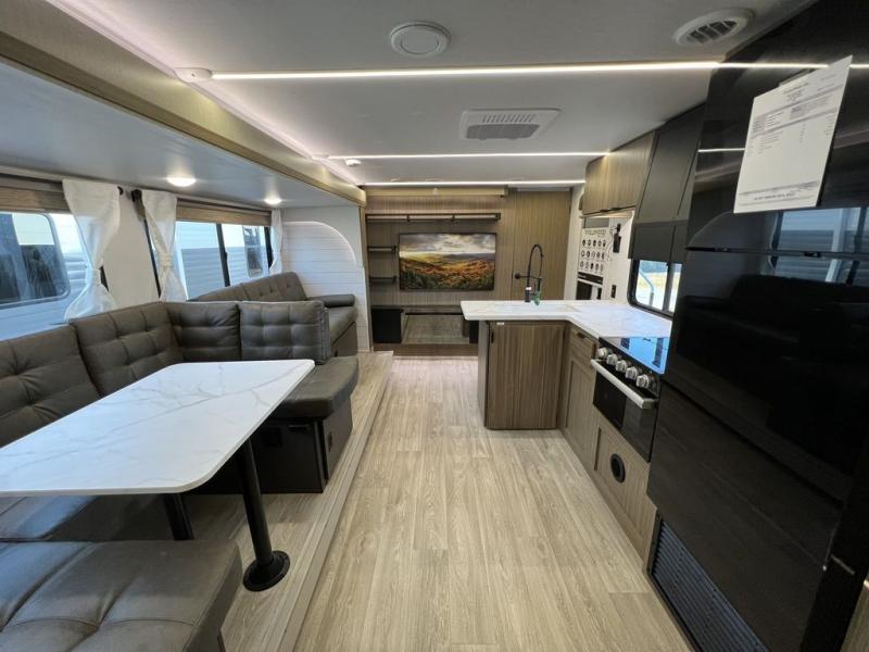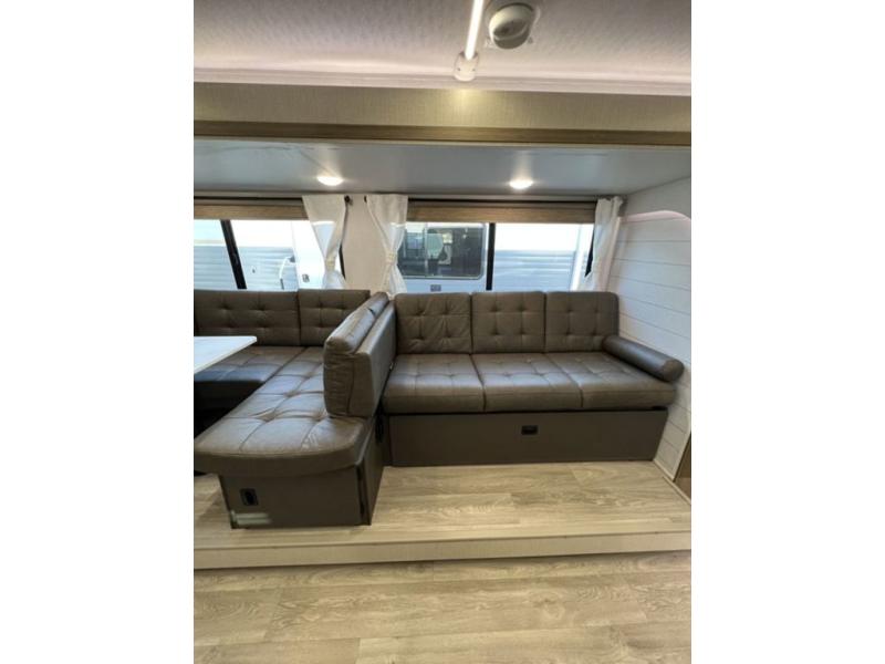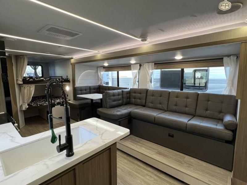 If you need a trailer that will enhance your family getaways, this Wildwood X-Lite travel trailer is it! Because of the double-size bunks in the back and the custom king bed with Versa-Tilt in the front private bedroom, your family can stretch out and sleep comfortably, and the Versa Lounge, which is made up of a U-shaped dinette and sofa, can also transform into extra sleeping space if needed. And your whole crew will love to relax by the fireplace in the evenings. Outside, a full pass-thru storage keeps your things packed away and a 15' patio awning gives you shade!