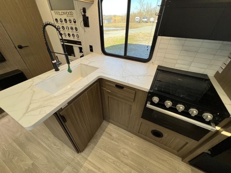 The Wildwood X-Lite travel trailers are packed with hassle-free camping amenities! There are a variety of floorplans to choose from so you cand find the best one to fit your needs. The enclosed Accessibelly will help protect against the elements and debris during transport, and the exterior retro/metal redesign is sure to be eye-catching! There are stylish roller shades inside, along with updated backsplash, elegant curtain rods and curtains, plus many more interior comforts! Choose a Wildwood X-Lite travel trailer today for quality and value!