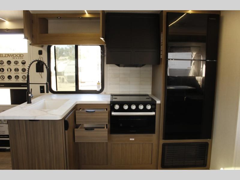The Wildwood X-Lite travel trailers are packed with hassle-free camping amenities! There are a variety of floorplans to choose from between three different regions. The enclosed Accessibelly will help protect against the elements and debris during transport, and the exterior retro/metal redesign is sure to be eye-catching! There are stylish roller shades inside, along with updated backsplash, elegant curtain rods and curtains, plus many more interior comforts! Choose a Wildwood X-Lite travel trailer today for quality and value!