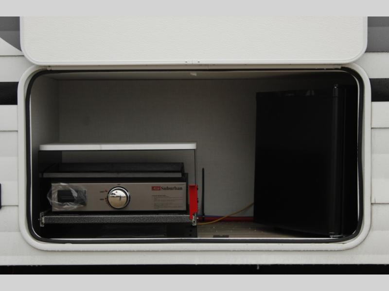 The Wildwood X-Lite travel trailers are packed with hassle-free camping amenities! There are a variety of floorplans to choose from so you can find the best one to fit your needs. The enclosed Accessibelly will help protect against the elements and debris during transport, and the exterior retro/metal redesign is sure to be eye-catching! There are stylish roller shades inside, along with updated backsplash, elegant curtain rods and curtains, plus many more interior comforts! Choose a Wildwood X-Lite travel trailer today for quality and value!