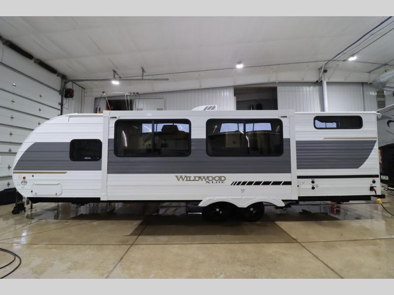 The Wildwood X-Lite travel trailers are packed with hassle-free camping amenities! There are a variety of floorplans to choose from between three different regions. The enclosed Accessibelly will help protect against the elements and debris during transport, and the exterior retro/metal redesign is sure to be eye-catching! There are stylish roller shades inside, along with updated backsplash, elegant curtain rods and curtains, plus many more interior comforts! Choose a Wildwood X-Lite travel trailer today for quality and value!