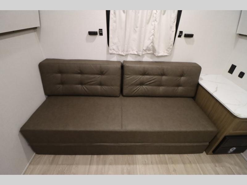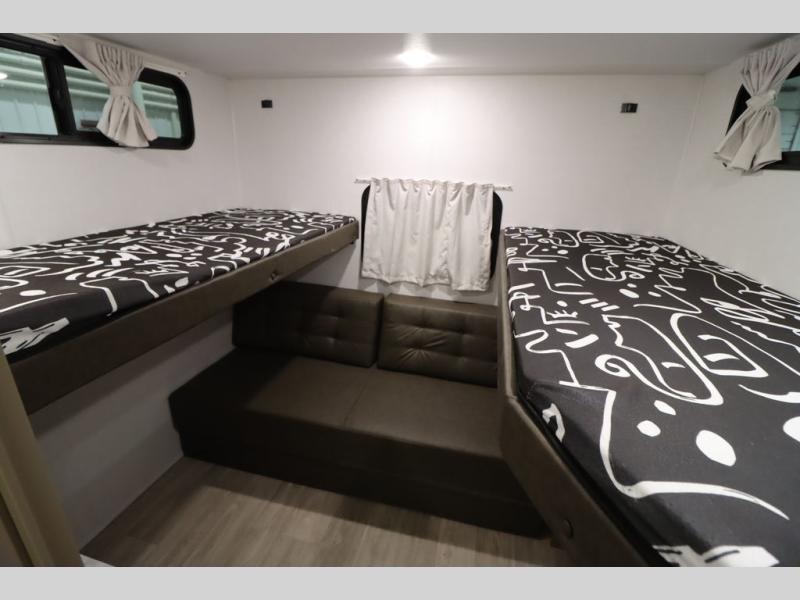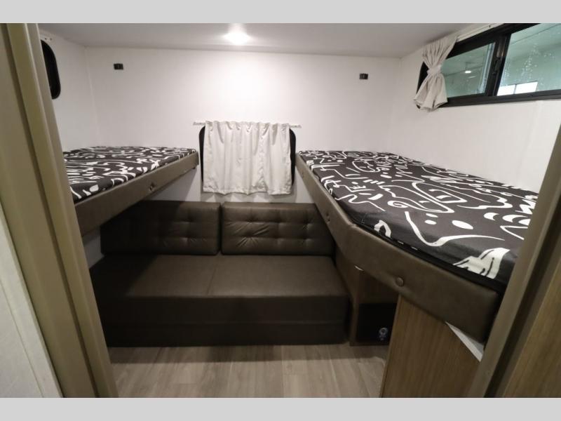 You can do so much with this Wildwood X-Lite travel trailer because it has a U-shaped dinette and Versa lounge slide out in the main living area and an excellent sleeping space back in the private bunkhouse! These pieces of furniture provide you with versatility while you travel so that your trailer can best fit your lifestyle. The kitchen is completely outfitted with excellent tools, like a three-burner cooktop and microwave, to make all of your meals delicious, and the full bathroom offers you a walk-in shower and vanity for the most convenience. The exterior portion of this trailer is complete with a 16' awning, and there is also a pass-through storage compartment for your camping equipment.