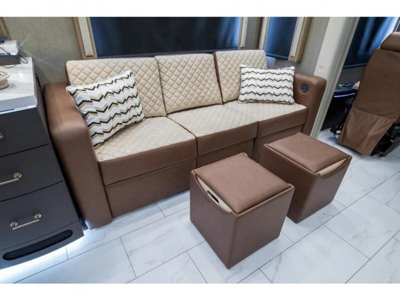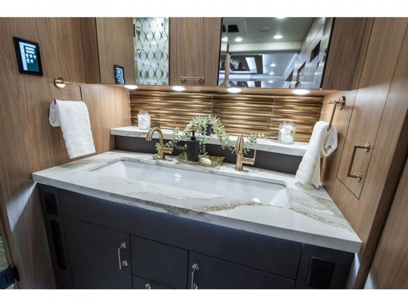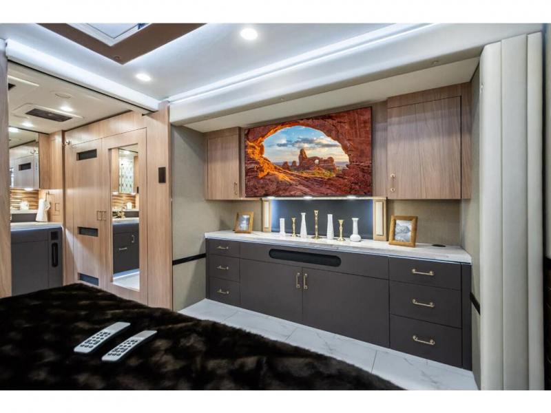 M.S.R.P. $1,755,300 - The 2026 Foretravel Realm Presidential takes the luxury motor coach market to all new heights and further propels the legacy of Foretravel. The Foretravel Realm stands alone as the finest motor coach of its kind available on the market today. It rides on Spartan's Premier K4 chassis, that is exclusive to Foretravel, offering incomparable ride, handling, and safety. This extraordinary motor coach is the Luxury Villa 7 (LV7) floor plan with the incomparable Sovereign interior décor package that is paired perfectly with the all-new Regal exterior paint scheme that can only be found on the Realm Presidential Series. Shop a huge selection of luxury diesel pusher motorhomes all at 1 location! Choose from American Coach Eagle – Dream – Entegra Coach Cornerstone – Anthem – Aspire – Fleetwood Palisade – Discovery LXE – Holiday Rambler Armada – Foretravel Realm – Foretravel Realm Presidential and more. We also buy and sell quality pre-owned models such Newmar King Aire – Essex – London Aire – Mountain Aire – Dutch Star - Tiffin Zephyr – Allegro Bus – Phaeton – Prevost Liberty Lady – Millennium - Marathon – Newell and much more. Visit MHSRV.com for our complete line-up and the sale prices that have made us the #1 volume selling motor home dealership in the world 12 years in a row! The LV7 is highlighted by a massive power lift living room TV; a stack washer/dryer; a luxurious master bedroom with a Slumber Ease motorized luxury king size mattress and power lift LED TV; and an incredible, residential designed master bath with huge custom tile shower, beautiful sink basins, large pull-out medicine cabinet, private water closet, and large master linen & wardrobe closet. You will also find a true flat floor design throughout the Realm Presidential Series including, not only Foretravel's premium flat floor slide-out rooms but also the bedroom to master bath transition. The Presidential Series also boasts a 600D Aqua Hot Hydronic Heating system. You will find the premier Valid digital dash with VDC control, along with the Valid air ride suspension, electronic suspension control with self-leveling feature, driver and passenger coach monitors, tire pressure sensors, beautiful full tile floors and back-splashes, ultra-high-end quartz counter tops throughout, premium brand refrigerator and convection microwave, LED accent lighting throughout, a beautiful curved entry way step, Executive entrance steps, a designer entry door with LED accent lighting, 4K QLED TVs where applicable, upgraded cab stereo and sub-woofer, heated and cooled leather pilot and co-pilot seats, recessed and upgraded ceiling features in the galley and bedroom, recessed cook top, an 8-camera system including 6 perimeter 360 Delta Mobile cameras for the ultimate in coach visibility, dual integrated power awnings, power entry door awning, exterior entertainment center, (2) electric sliding cargo trays, exterior freezer, full coach and multi-color LED ground effect lighting package, unmistakable full body paint exterior with Armor-Coat sprayed protection below windshield, chrome grill and accent package, (2) 3000 watt inverters, Gold Heat floor tile heating system, solar panel package, dishwasher drawer, 5.1 surround sound in living room and StarLink antenna. The Spartan K4 chassis is not only massive in stature but boasts a best-in-class Independent Front Suspension system, a passive steering rear tag axle for incomparable handling and maneuverability as well as the Performance Choice® anti-roll bar with selectable drive modes, and automatic traction control. You will know instantly, once behind the wheel of a Realm, that this chassis is truly a cut above all other luxury motor coach chassis. It is powered by a Cummins 605HP diesel. You will also find additional advanced safety features on a Realm like a fire suppression system for the engine, Tyron Bead-Lock wheel safety bands, and steel construction rather than aluminum found in the competition. You will also enjoy the ultimate in slide-out room fit and finish. These slides are undoubtedly head and shoulders above the competition. They feature pneumatic seals that provide a literal airtight seal completely around the entire slide-out room regardless of slide position for the premium in fit, finish, and function. They also feature a power drop-down flooring system that gives the Realm not only a flat-floor when extended, but a true flat-floor when retracted as well. (No uneven floor surfaces, damaging rollers, poorly sealed rubber gaskets, etc.) The Realm also features a flat floor bedroom to master bath transition. You won't find that in the competition; Nor will you find a *3-YEAR or 50K MILE SPARTAN NO-COST MAINTENANCE PLAN INCLUDED - (A Realm Exclusive) and a *2-YEAR or 24K MILE LIMITED WARRANTY. For more details contact Motor Home Specialist today. REALM, by definition, is a royal kingdom; a domain within which anything may occur, prevail, or dominate. The Realm of Dreams is here and available at Motor Home Specialist, the #1 Volume Selling Motor Home Dealership in the World. Visit MHSRV.com or call 800-335-6054 for complete details, photos, videos, brochures, and more. The Foretravel Realm Presidential Series... Your Kingdom Awaits.