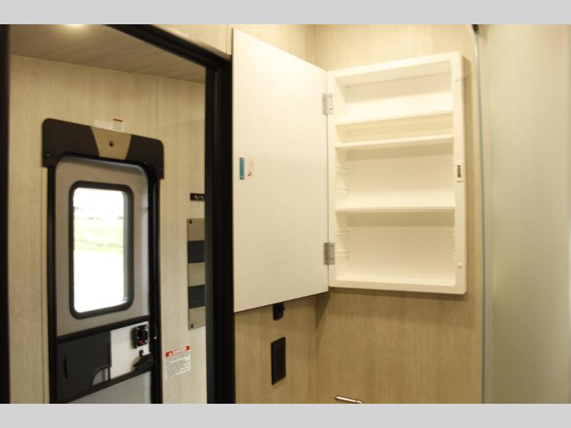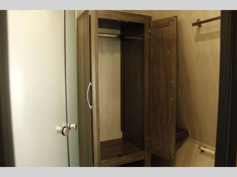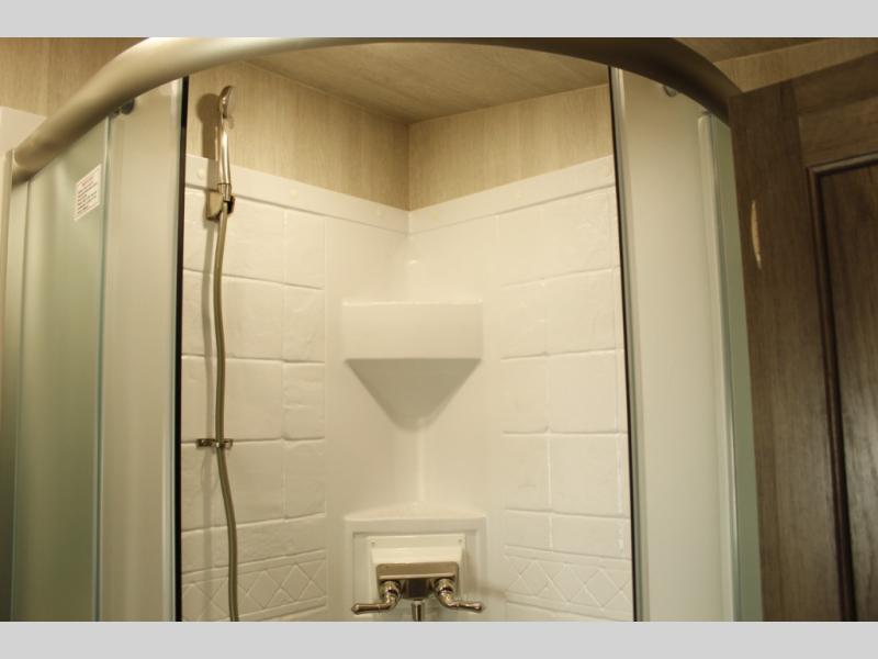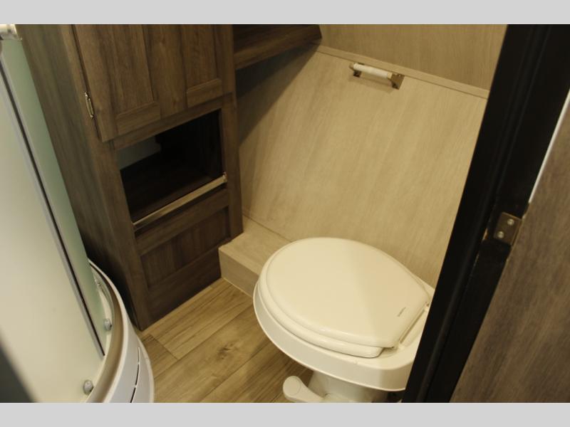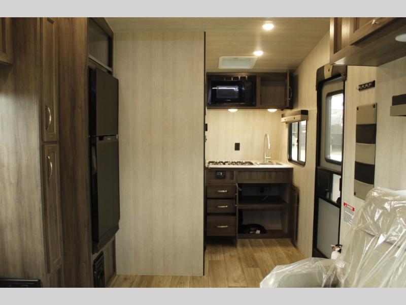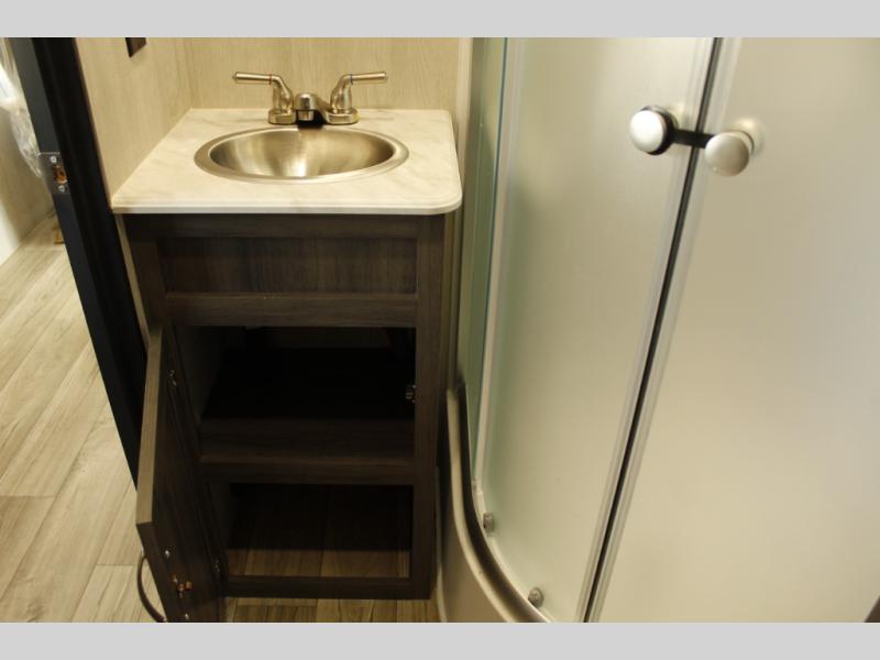 This toy hauler with 16' 1" cargo space will be perfect for trail riding fun! Once you've unloaded your toys, you can relax on the dual sofas with a table in between or enjoy a cold drink on the dual lounge chairs with a table. The entertainment center is across from the chairs for added convenience, and the kitchen pantry is nearby so you can grab a snack. A two burner cooktop, refrigerator, and sink also comes standard so you can prepare meals each day. And don't overlook the full bath with a toilet, sink, neo-angled shower, and bath wardrobe for clean towels.