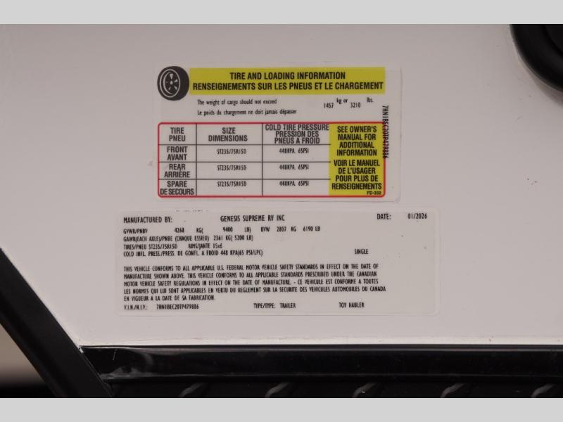 New 2026 Genesis Supreme G220LTE Toy Hauler Travel Trailer