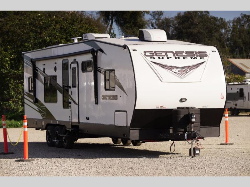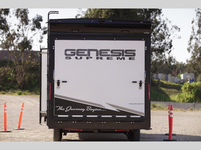 All sizes of off-road toys can fit into one of these Genesis Supreme fifth wheel toy haulers or travel trailer toy haulers! They are made for the outdoor enthusiasts and can handle harsh environments while still providing a luxurious lifestyle. With innovative floorplans built by engineers, you can know you will find what you're looking for in a toy hauler. Start your off-road journey today with your favorite model!