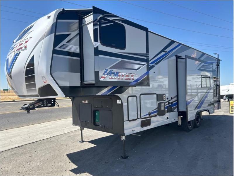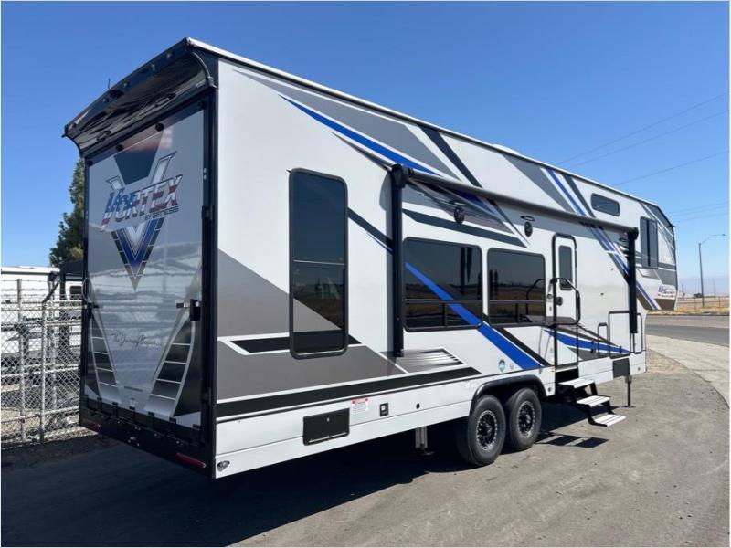 Your camping life is going to be a blast with the Genesis Supreme Vortex toy hauler! The innovative floorplans provide you with everything you need for memorable trips. These models can withstand the extreme heat of the desert, while still keeping you comfortable inside. There are kitchen and bath amenities inside, along with ample storage space for your belongings. With a wide variety of floorplans to choose from, you're sure to find the Vortex that fits your needs best!