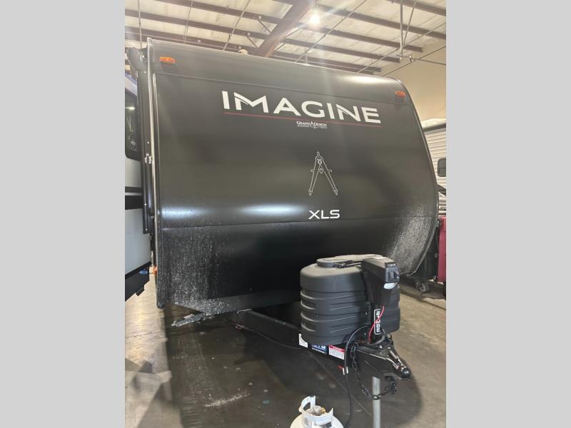 Let your imagination run wild with the possibilities that the Grand Design Imagine XLS travel trailer can provide! The Imagine XLS has been built with oversized tank capacities, an extra-large 2" fresh water drain valve, a ducted A/C system, a power tongue jack, and a heated and enclosed underbelly with suspended tanks. There is a designated heat duct to the subfloor and a residential ductless heating system throughout. For outdoor adventures, the electric awning with LED lights will enable you to stay protected, and the Tuff-Ply pass-thru flooring will withstand your adventures. You will also love the XLS Solar Package that comes with a 200W roof mounted solar panel, a 30 Amp charge controller, a 12V 10 cu. ft. refrigerator, and roof mounted quick connect plugs!