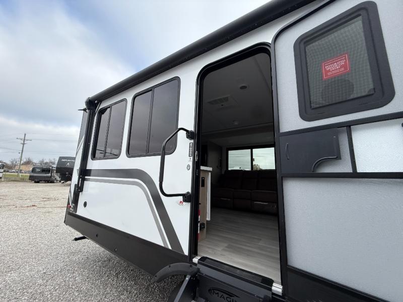 Just imagine leaving the world behind and secluding yourself away with your favorite people in your Grand Design Imagine travel trailer! The Imagine has been designed to enjoy camping and includes a high-capacity furnace, a heated and enclosed underbelly with suspended tanks, a designated heat duct to the subfloor, and a high-density roof insulation with attic vent. You'll have a large panoramic window to let natural lighting in and an adjustable Power Awning with LED Lights for those night gatherings. The exclusive drop-frame pass-through storage compartment is going to allow you to bring along lots of equipment, and the universal docking station is an all-in-one location for utilities and hook-ups. You'll also have oversized tank capacities so that you can fill and empty your tanks less often.