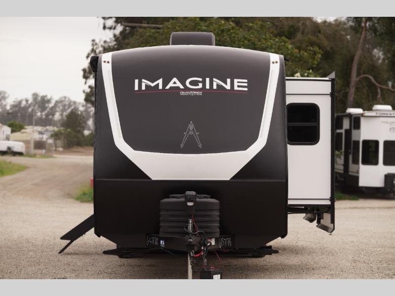 Just imagine leaving the world behind and secluding yourself away with your favorite people in your Grand Design Imagine travel trailer! The Imagine has been designed to enjoy camping and includes a high-capacity furnace, a heated and enclosed underbelly with suspended tanks, a designated heat duct to the subfloor, and a high-density roof insulation with attic vent. You'll have a large panoramic window to let natural lighting in and an adjustable Power Awning with LED Lights for those night gatherings. The exclusive drop-frame pass-through storage compartment is going to allow you to bring along lots of equipment, and the universal docking station is an all-in-one location for utilities and hook-ups. You'll also have oversized tank capacities so that you can fill and empty your tanks less often.