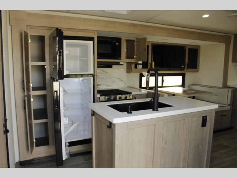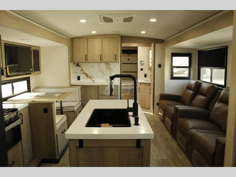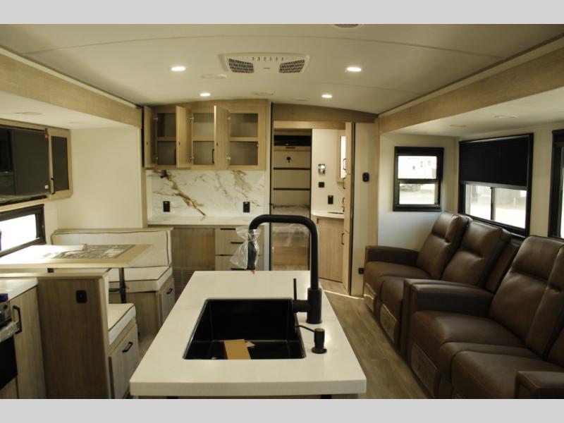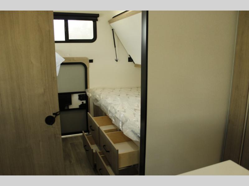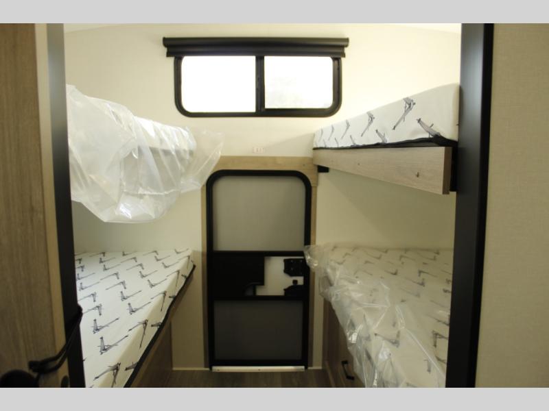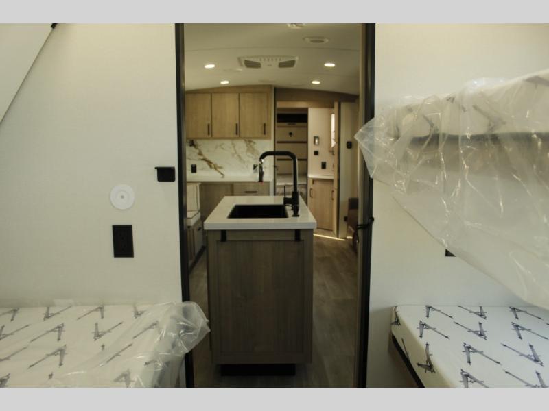 A great travel trailer for larger families or those that enjoy traveling with a few friends! This Imagine quad bunk model features two private bedrooms, with the master up front including a private entry/exit door just beyond a spacious walk-through bathroom that features a 30" x 36" walk-In shower with skylight to bring in more natural lighting each day, plus a toilet, sink and linen storage. In the kitchen, a nice island for food prep and cleaning up makes it easy to be part of the conversation in the room while you get meals ready for everyone. Speaking of food prep, how about the outside griddle and 1.6 cu. ft. refrigerator which is perfect for cooking outside, or for making late night snacks when all are enjoying the evening under the stars or in lawn chairs under one of two 9' 6" awnings with LED lighting. Your kids can bring along extra guests with the added space that a quad bunk model provides!