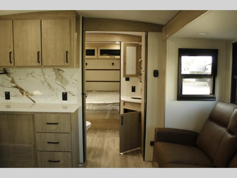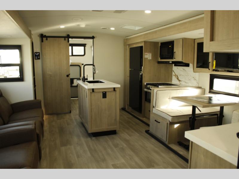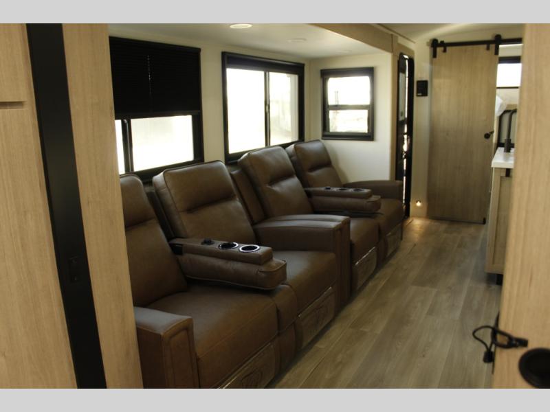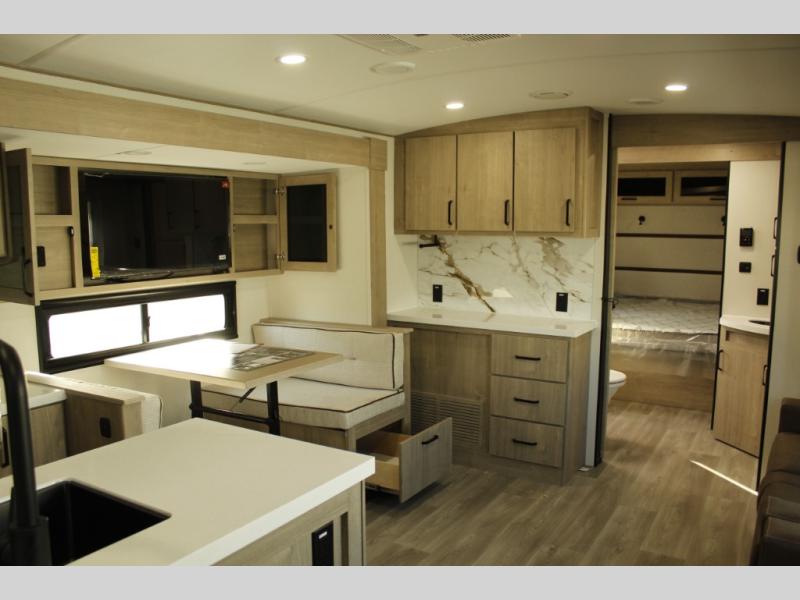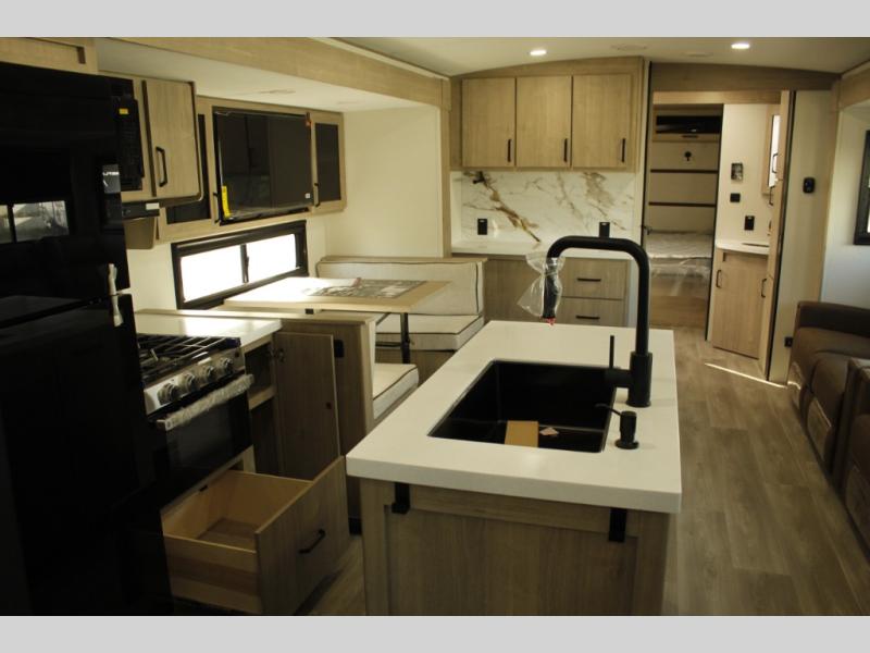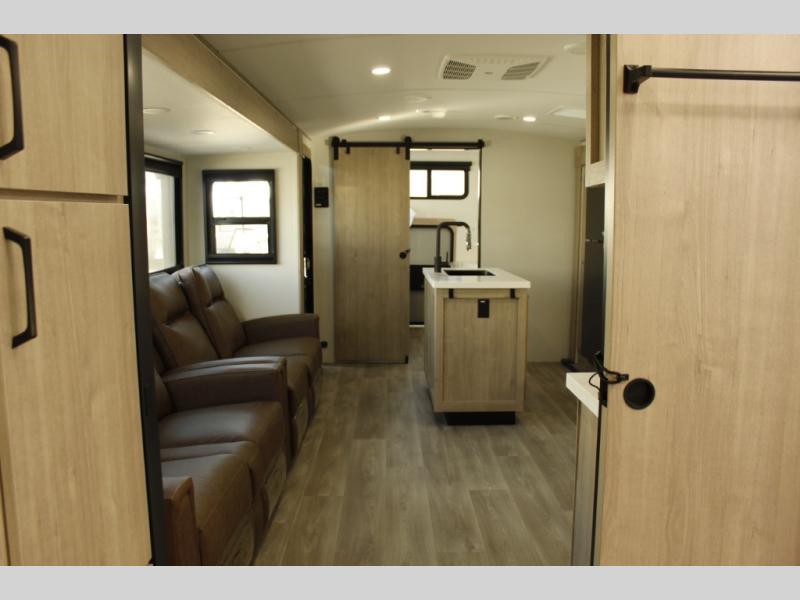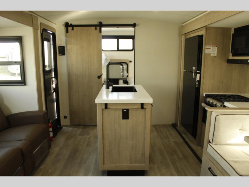 A great travel trailer for larger families or those that enjoy traveling with a few friends! This Imagine quad bunk model features two private bedrooms, with the master up front including a private entry/exit door just beyond a spacious walk-through bathroom that features a 30" x 36" walk-In shower with skylight to bring in more natural lighting each day, plus a toilet, sink and linen storage. In the kitchen, a nice island for food prep and cleaning up makes it easy to be part of the conversation in the room while you get meals ready for everyone. Speaking of food prep, how about the outside griddle and 1.6 cu. ft. refrigerator which is perfect for cooking outside, or for making late night snacks when all are enjoying the evening under the stars or in lawn chairs under one of two 9' 6" awnings with LED lighting. Your kids can bring along extra guests with the added space that a quad bunk model provides!