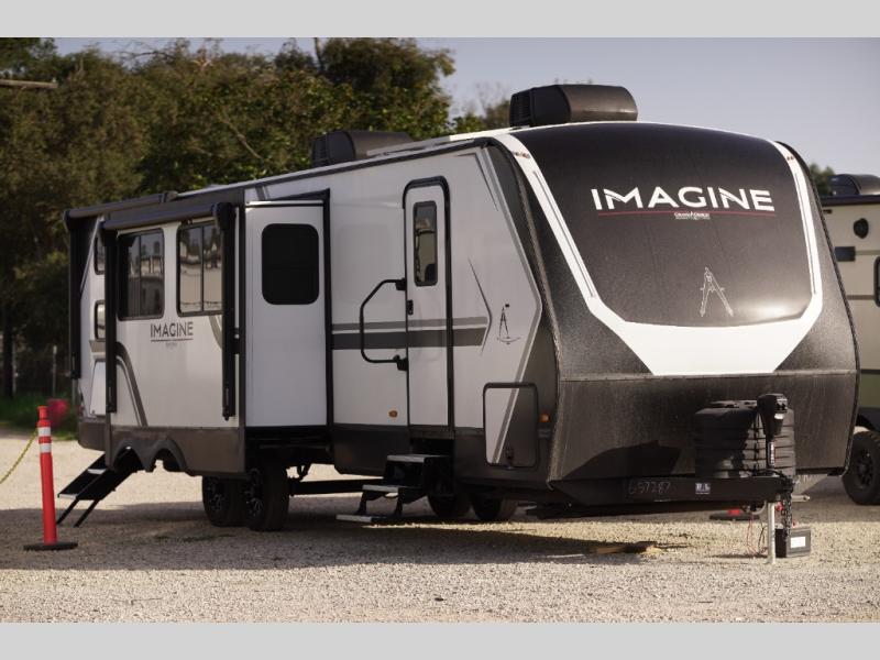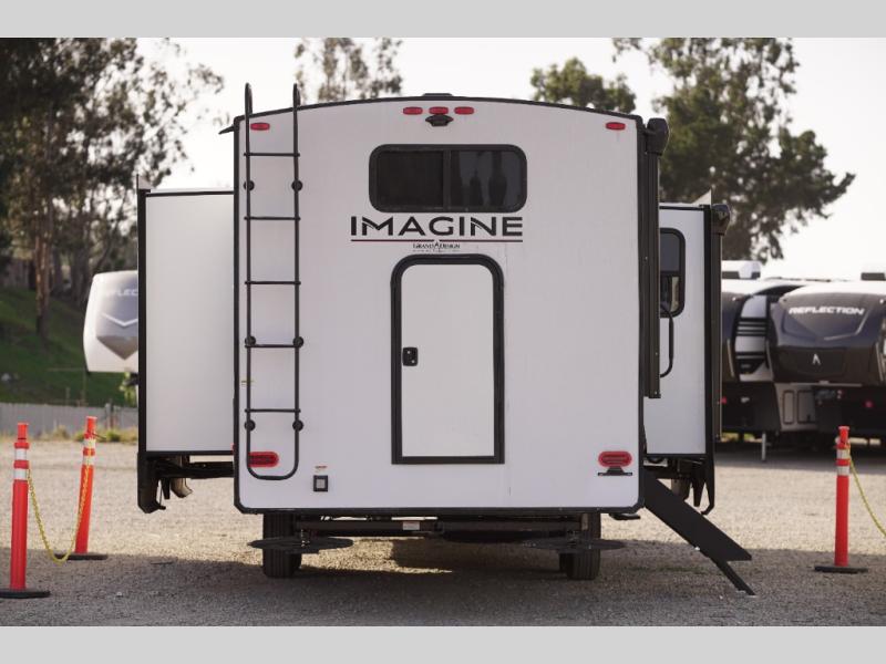 Just imagine leaving the world behind and secluding yourself away with your favorite people in your Grand Design Imagine travel trailer! The Imagine has been designed to enjoy camping and includes a high-capacity furnace, a heated and enclosed underbelly with suspended tanks, a designated heat duct to the subfloor, and a high-density roof insulation with attic vent. You'll have a large panoramic window to let natural lighting in and an adjustable Power Awning with LED Lights for those night gatherings. The exclusive drop-frame pass-through storage compartment is going to allow you to bring along lots of equipment, and the universal docking station is an all-in-one location for utilities and hook-ups. You'll also have oversized tank capacities so that you can fill and empty your tanks less often.