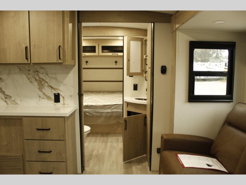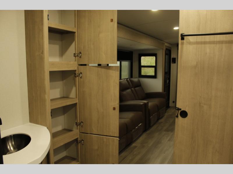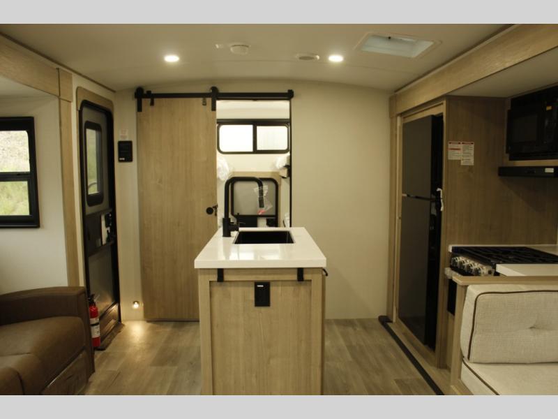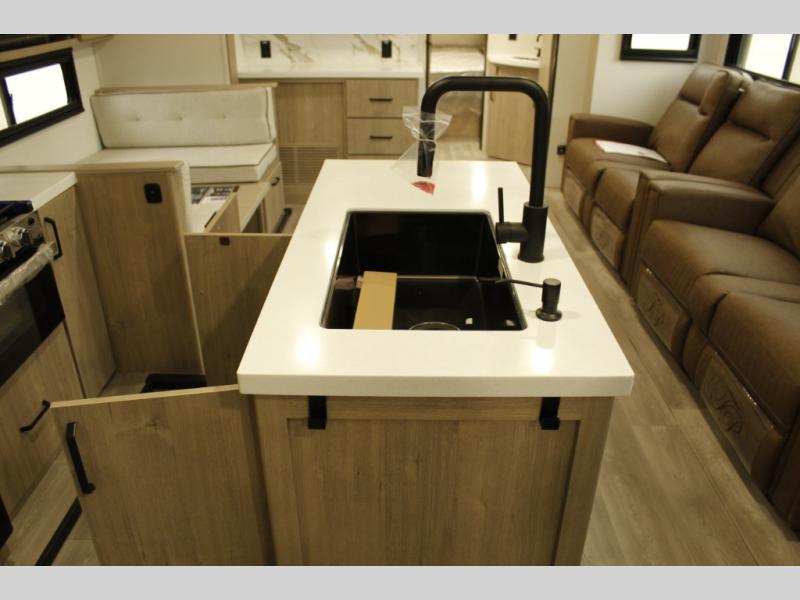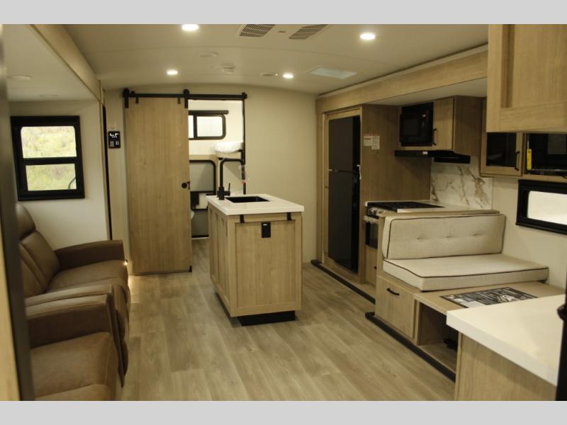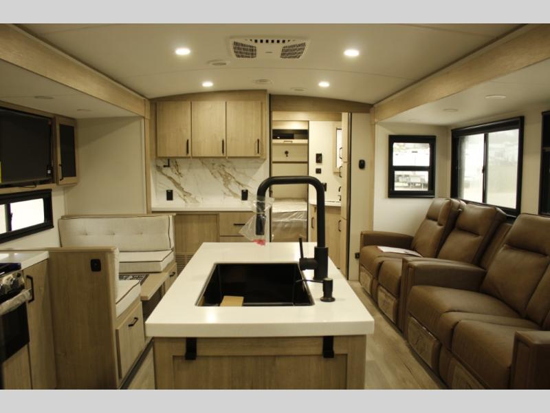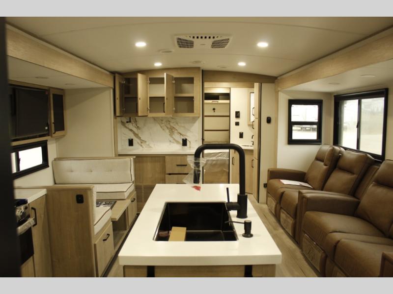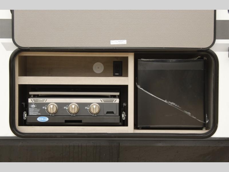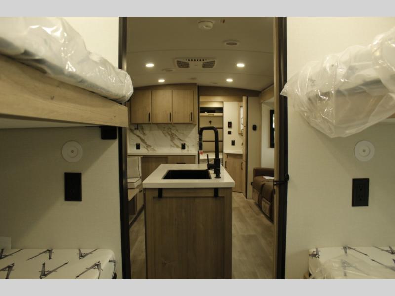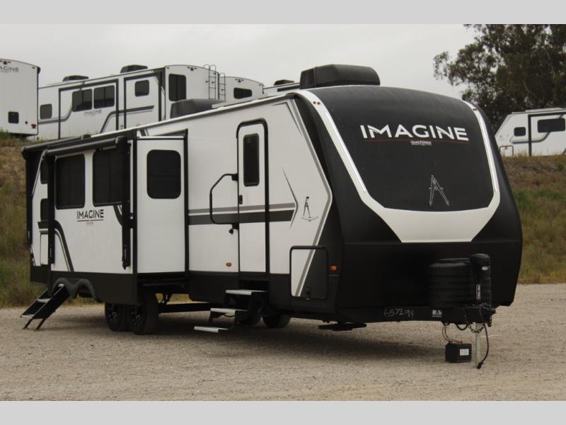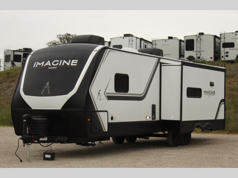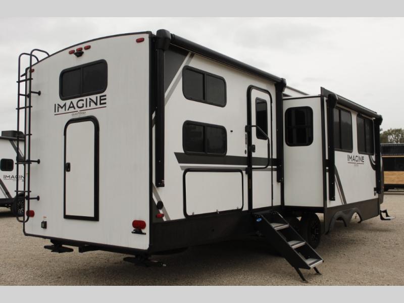 A great travel trailer for larger families or those that enjoy traveling with a few friends! This Imagine quad bunk model features two private bedrooms, with the master up front including a private entry/exit door just beyond a spacious walk-through bathroom that features a 30" x 36" walk-In shower with skylight to bring in more natural lighting each day, plus a toilet, sink and linen storage. In the kitchen, a nice island for food prep and cleaning up makes it easy to be part of the conversation in the room while you get meals ready for everyone. Speaking of food prep, how about the outside griddle and 1.6 cu. ft. refrigerator which is perfect for cooking outside, or for making late night snacks when all are enjoying the evening under the stars or in lawn chairs under one of two 9' 6" awnings with LED lighting. Your kids can bring along extra guests with the added space that a quad bunk model provides!