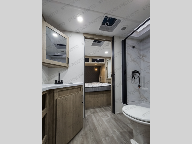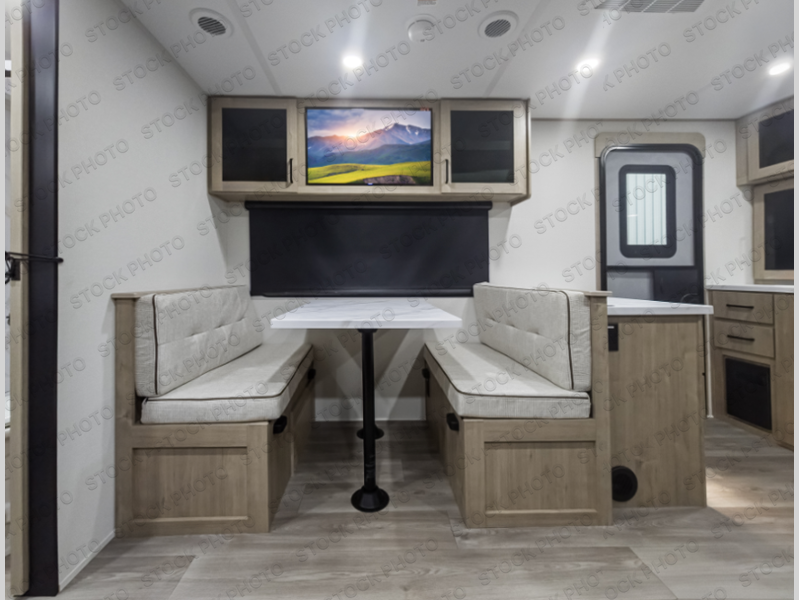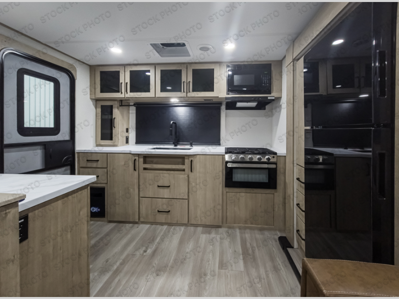 Treat yourself to a weekend of fun in this Imagine XLS travel trailer! Whether it's just you and your spouse, or you've chosen to bring along a group of friends, this trailer will meet your needs. The front bedroom can sleep two people on the walk-around queen-size bed. The bedroom is quite functional because it not only contains the second exterior entry door, but it also has a private entrance into the walk-through bathroom since it is located on the other side of the bathroom. The booth dinette is functional too because it can transform from a dining location into a sleeping location, and the theater seating is directly across from the LED TV for easy viewing. The rear kitchen is fit for the chef on the trip, it features residential countertops, a stainless-steel sink and a 3-burner range with oven for you to cook your meals in comfort.