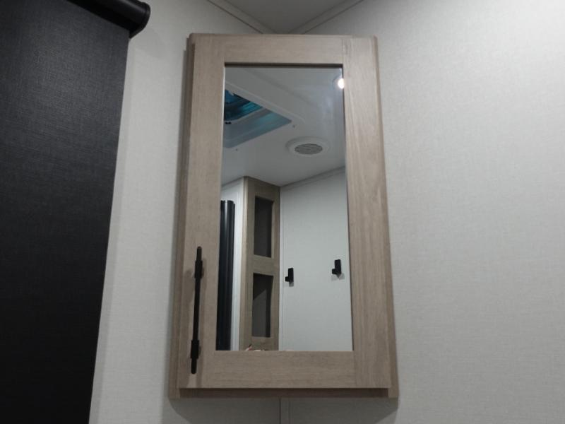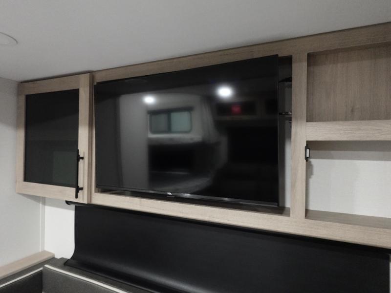 The dual entry doors make it easy to enter and exit this travel trailer! You will find a walk-around queen-size bed up front in the private bedroom, and one of the entry/exit doors to the unit so you can quietly slip out for an early morning fishing trip. The U-shaped dinette is right next to the window, so you can look out at your surroundings while you enjoy breakfast. The double-size bunks have some privacy curtains, and the bunks are right next to the full bathroom for easy access in the middle of the night. The fully equipped kitchen has everything you need to get dinner in the oven, and you can have some more prep space by using the flip-up countertop extension. You even have an outdoor griddle and an outdoor 1.6 cu. ft. refrigerator to enjoy a cold beverage while you cook under the 22' electric awning!