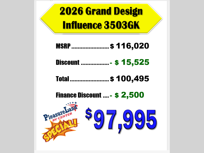 New 2026 Grand Design Influence 3503GK Fifth Wheel