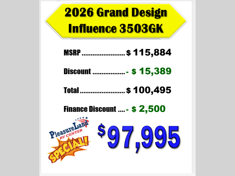 New 2026 Grand Design Influence 3503GK Fifth Wheel