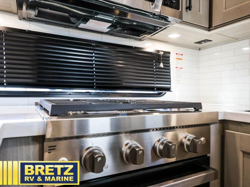 Any Grand Design Influence fifth wheel features five-sided aluminum cage construction with a walk-on roof and a fully enclosed underbelly with heated tanks and storage for all weather camping. For peace of mind, the MORryde CRE3000 Suspension system will provide safe and smooth towing, and the 101" widebody construction offers all the room you need and that is before multiple slides are fully engaged. You will appreciate the Keyed-Alike locks, slam-latch baggage doors with magnetic door catches, exterior security light, and SolidStep entry steps. On the inside, Congoleum flooring, premium roller shades for privacy, a hallway handrail for safety, and nightstands with USB ports to keep all of your electronics fully charged. You will also love the On Demand tankless water heater when showering, plus the added heat and ambiance from an electric fireplace, and so much more!