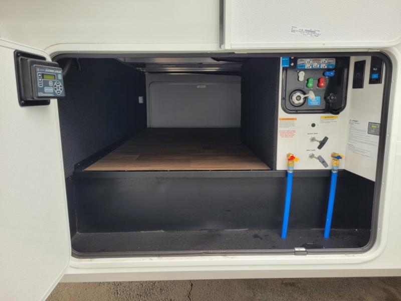 Any Grand Design Influence fifth wheel features five-sided aluminum cage construction with a walk-on roof and a fully enclosed underbelly with heated tanks and storage for all weather camping. For peace of mind, the MORryde CRE3000 Suspension system will provide safe and smooth towing, and the 101" widebody construction offers all the room you need and that is before multiple slides are fully engaged. You will appreciate the Keyed-Alike locks, slam-latch baggage doors with magnetic door catches, exterior security light, and SolidStep entry steps. On the inside, Congoleum flooring, premium roller shades for privacy, a hallway handrail for safety, and nightstands with USB ports to keep all of your electronics fully charged. You will also love the on demand tankless water heater when showering, plus the added heat and ambiance from an electric fireplace, and so much more!