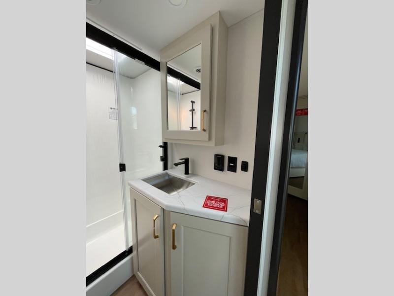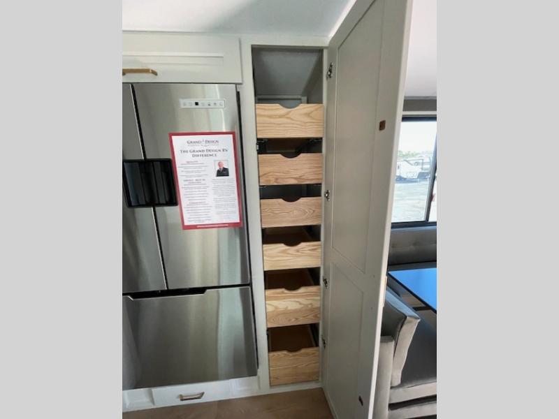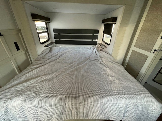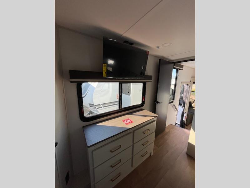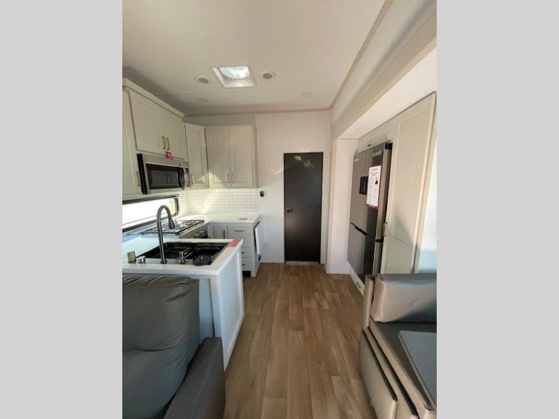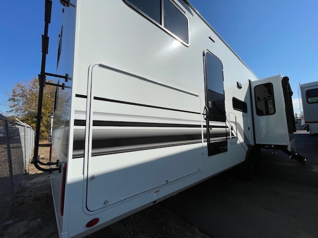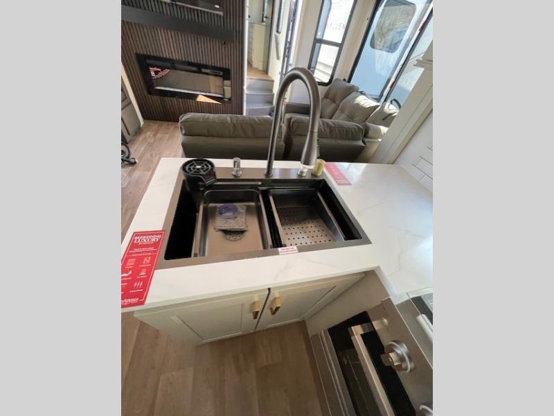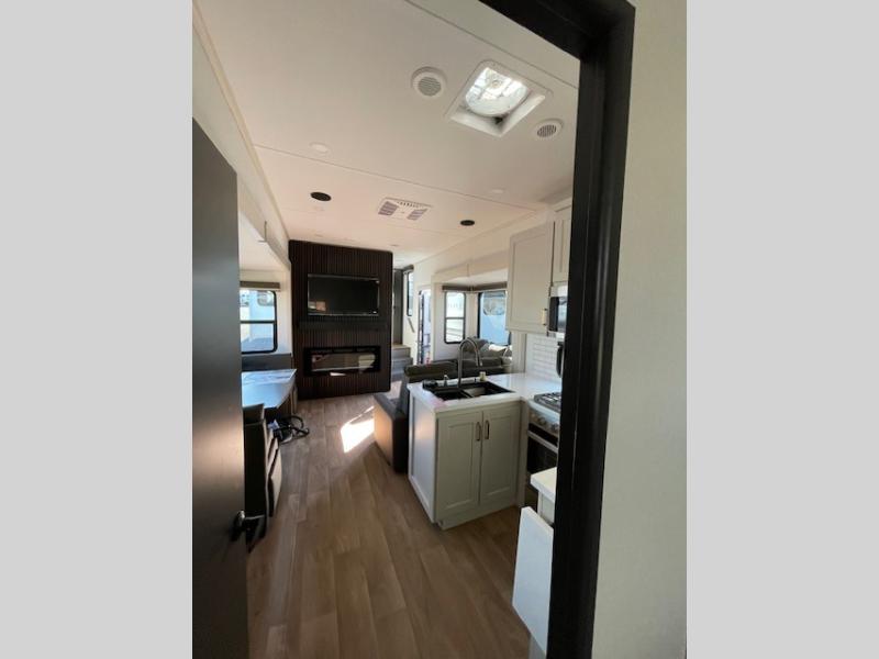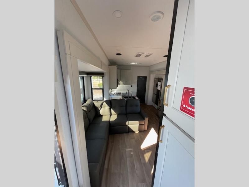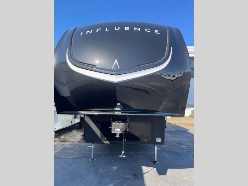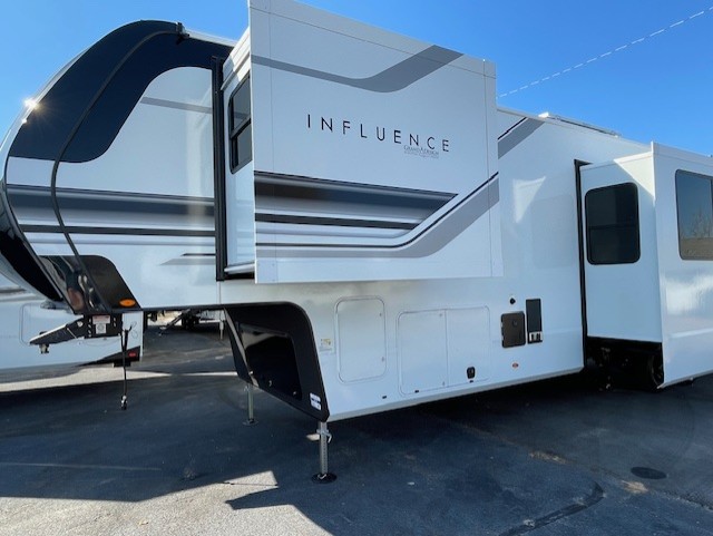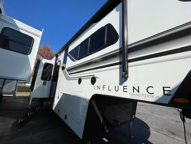 Any Grand Design Influence fifth wheel features five-sided aluminum cage construction with a walk-on roof and a fully enclosed underbelly with heated tanks and storage for all weather camping. For peace of mind, the MORryde CRE3000 Suspension system will provide safe and smooth towing, and the 101" widebody construction offers all the room you need and that is before multiple slides are fully engaged. You will appreciate the Keyed-Alike locks, slam-latch baggage doors with magnetic door catches, exterior security light, and SolidStep entry steps. On the inside, Congoleum flooring, premium roller shades for privacy, a hallway handrail for safety, and nightstands with USB ports to keep all of your electronics fully charged. You will also love the on demand tankless water heater when showering, plus the added heat and ambiance from an electric fireplace, and so much more!