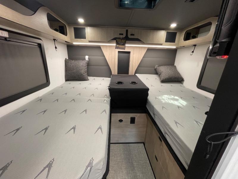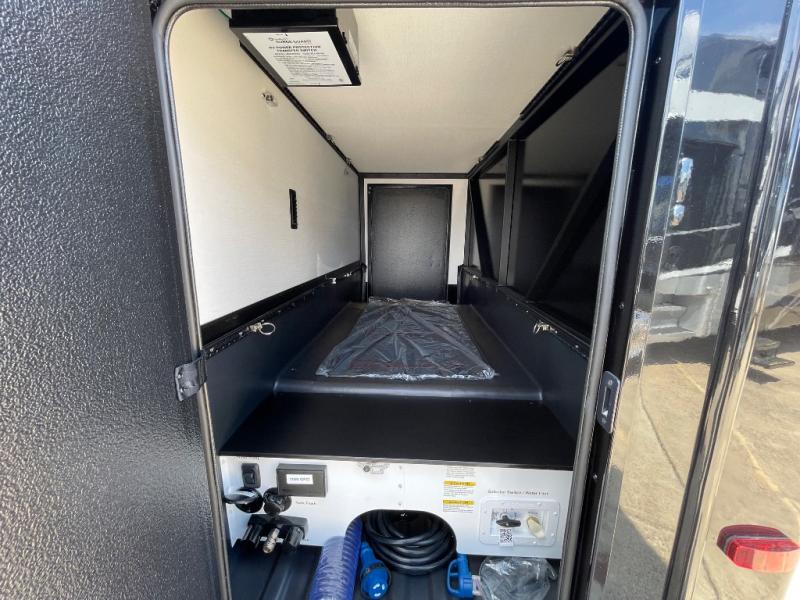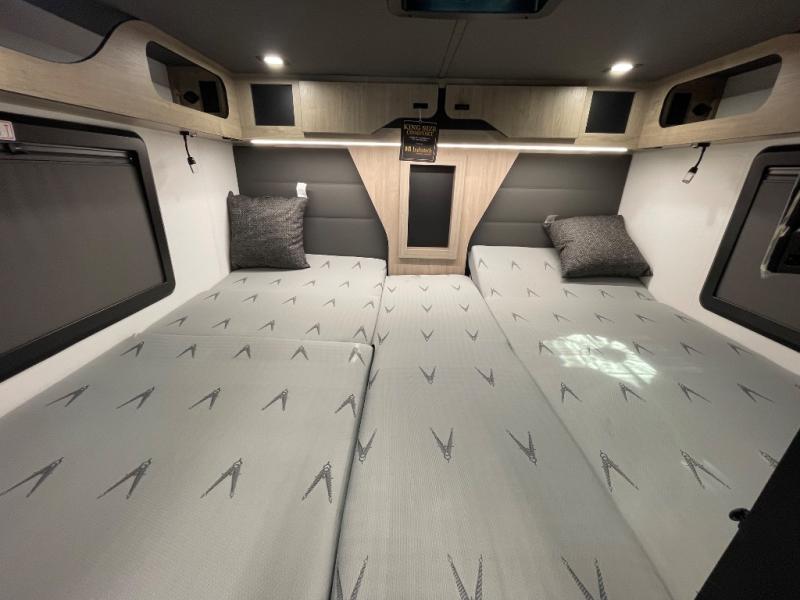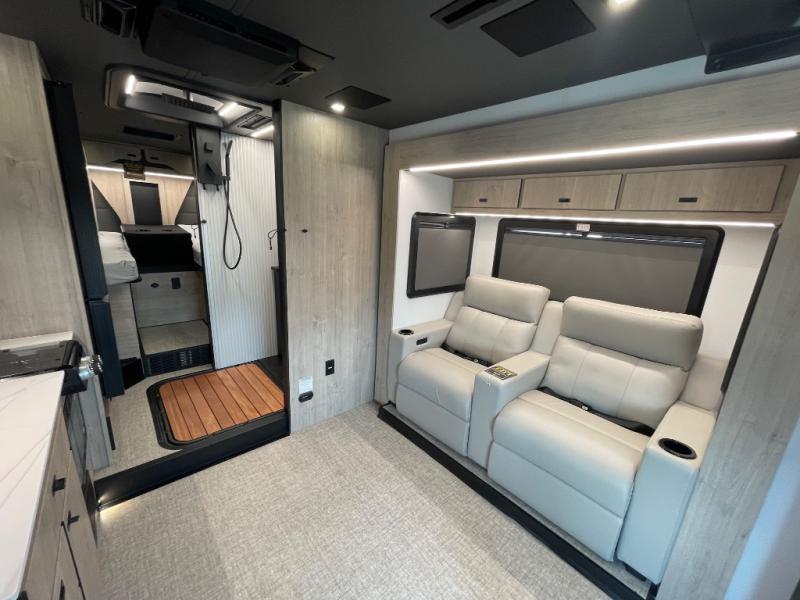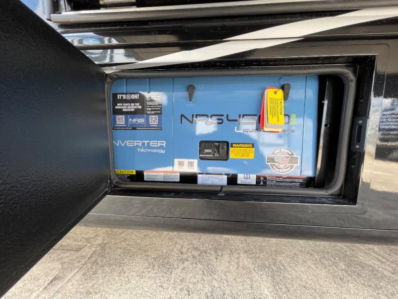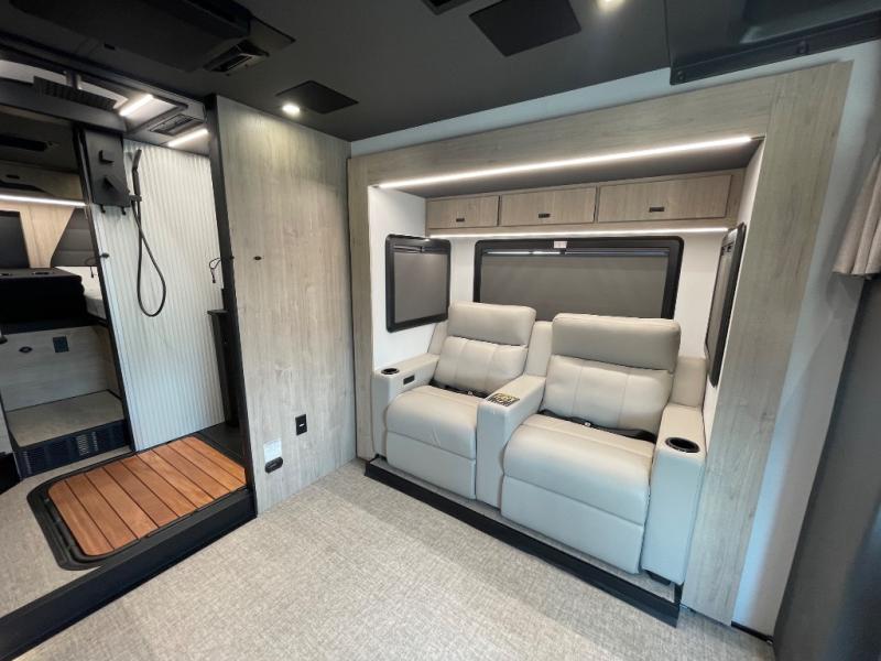 Perfect for couples or families who love to travel in style, this motorhome has everything you wish for in a coach. The rear twin beds convert to a king-sized bed, providing a spacious and comfortable sleeping area for two. The full bathroom is equipped with everything you need for a comfortable stay, providing a convenient spot to freshen up after a long day of exploring. The kitchen is equipped with a 10 cu refrigerator for ample storage, a microwave, and a two-burner cooktop for trying out any trending recipe. In addition, the pantry provides more storage for food and cookware.The 32” smart TVs in the bedroom and living room provide endless entertainment options, while the power seating ensures comfortable viewing angles. The bunk over the cab provides additional sleeping space for kids or adults, and the exterior TV offers an ideal spot to enjoy your favorite shows or sports teams while outdoors.