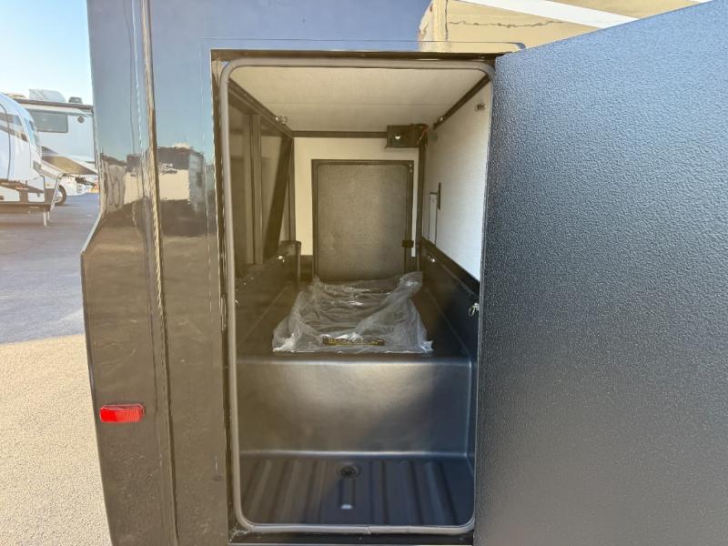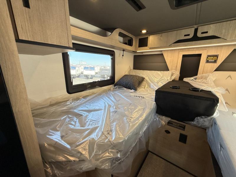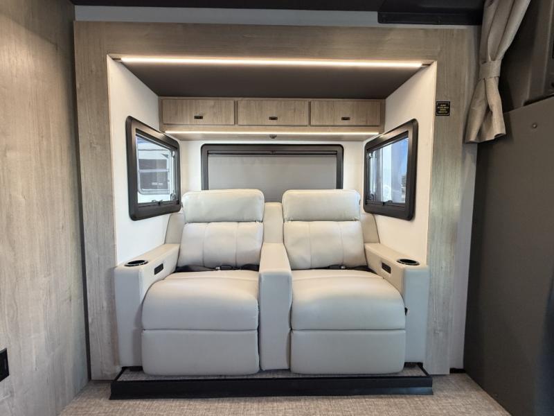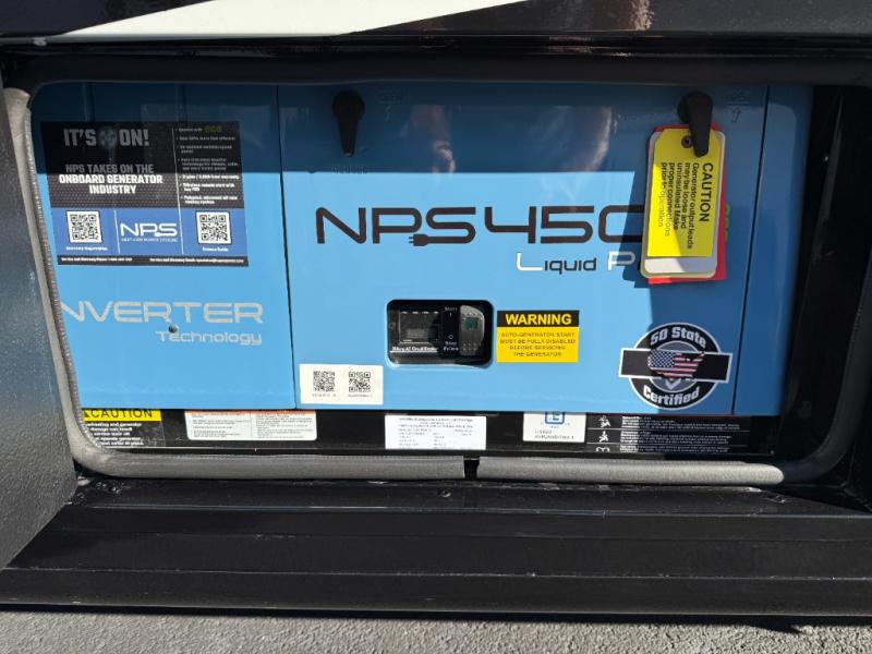 Perfect for couples or families who love to travel in style, this motorhome has everything you wish for in a coach. The rear twin beds convert to a king-sized bed, providing a spacious and comfortable sleeping area for two. The full bathroom is equipped with everything you need for a comfortable stay, providing a convenient spot to freshen up after a long day of exploring. The kitchen is equipped with a 10 cu refrigerator for ample storage, a microwave, and a two-burner cooktop for trying out any trending recipe. In addition, the pantry provides more storage for food and cookware.The 32” smart TVs in the bedroom and living room provide endless entertainment options, while the power seating ensures comfortable viewing angles. The bunk over the cab provides additional sleeping space for kids or adults, and the exterior TV offers an ideal spot to enjoy your favorite shows or sports teams while outdoors.