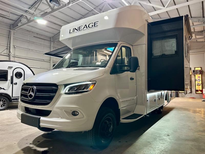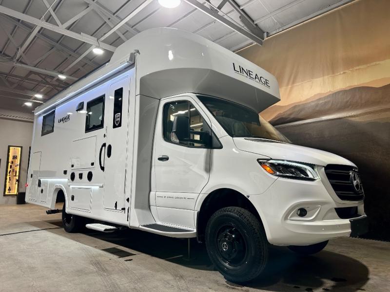Grand Design's first motorized coach, the Lineage Series M is coming to you with luxurious features at a great value. This Class C diesel motorhome sits on a Mercedes-Benz sprinter chassis for quality and performance you can trust. True to Grand Design's foundation, the Lineage includes interior comforts, durable construction, innovative features, and attention to detail. The Series M Package includes natural teak wood grain, a Lineage Suspension Package, and more. There is also a Blackout Package with black aluminum wheels, a Chromeout Package with chrome aluminum wheels, plus additional packages to enhance your travel experience!