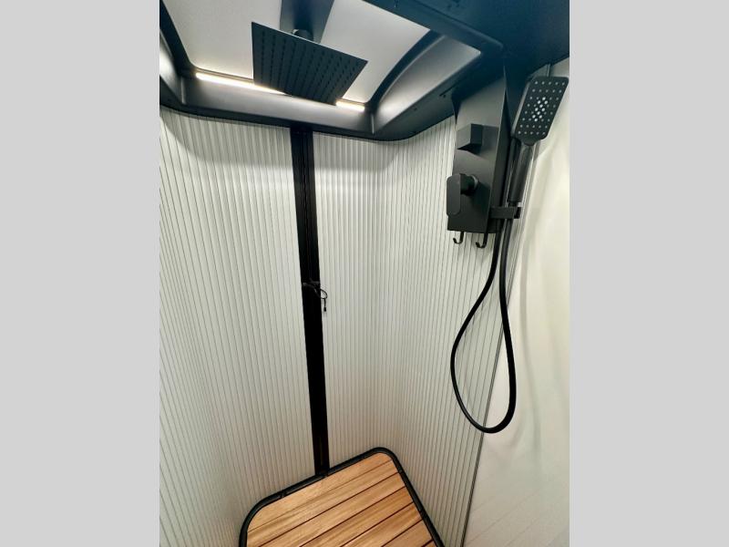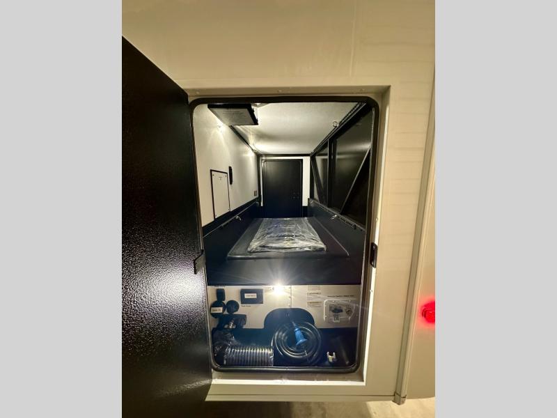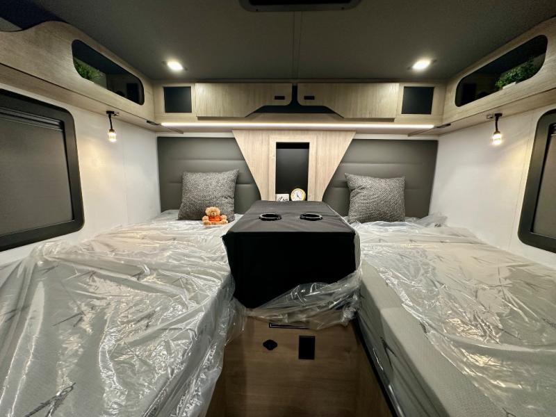 Perfect for couples or families who love to travel in style, this motorhome has everything you wish for in a coach. The rear twin beds convert to a king-sized bed, providing a spacious and comfortable sleeping area for two. The full bathroom is equipped with everything you need for a comfortable stay, providing a convenient spot to freshen up after a long day of exploring. The kitchen is equipped with a 10 cu refrigerator for ample storage, a microwave, and a two-burner cooktop for trying out any trending recipe. In addition, the pantry provides more storage for food and cookware.The 32” smart TVs in the bedroom and living room provide endless entertainment options, while the power seating ensures comfortable viewing angles. The bunk over the cab provides additional sleeping space for kids or adults, and the exterior TV offers an ideal spot to enjoy your favorite shows or sports teams while outdoors.