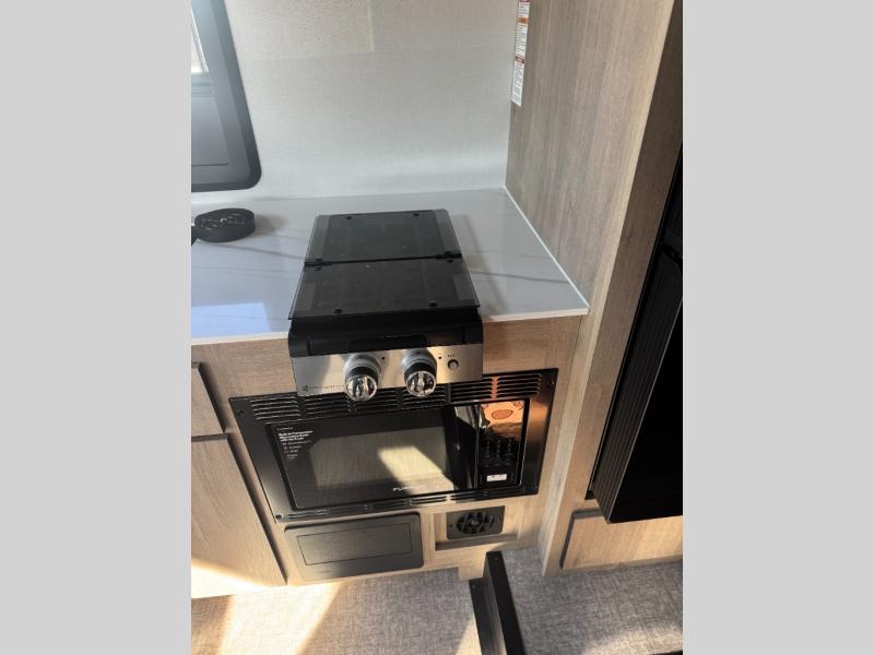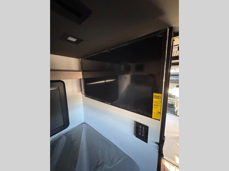 Perfect for couples or families who love to travel in style, this motorhome has everything you wish for in a coach. The rear twin beds convert to a king-sized bed, providing a spacious and comfortable sleeping area for two. The full bathroom is equipped with everything you need for a comfortable stay, providing a convenient spot to freshen up after a long day of exploring. The kitchen is equipped with a 10 cu refrigerator for ample storage, a microwave, and a two-burner cooktop for trying out any trending recipe. In addition, the pantry provides more storage for food and cookware.The 32” smart TVs in the bedroom and living room provide endless entertainment options, while the power seating ensures comfortable viewing angles. The bunk over the cab provides additional sleeping space for kids or adults, and the exterior TV offers an ideal spot to enjoy your favorite shows or sports teams while outdoors.