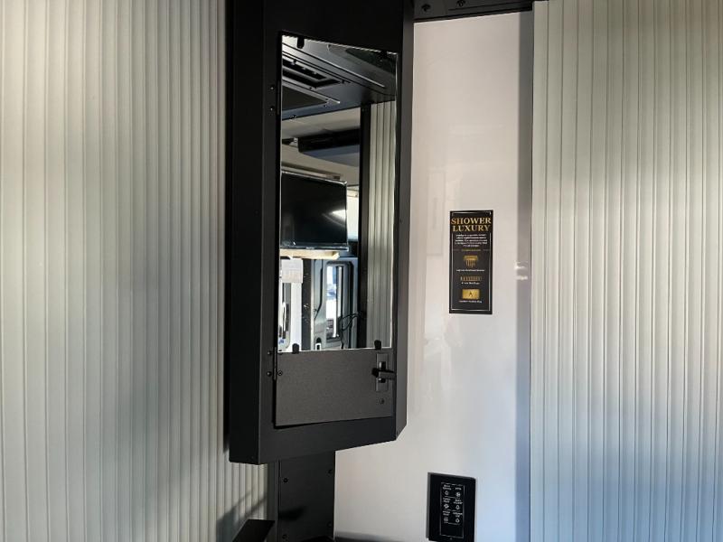 The onboard bathroom features a spacious shower, vanity, and modern fixtures, giving you residential-level convenience and comfort no matter where your journey takes you. With advanced climate control, quality construction, and intuitive systems throughout, this model is built to handle weekend escapes or extended travel with confidence.