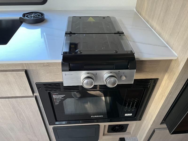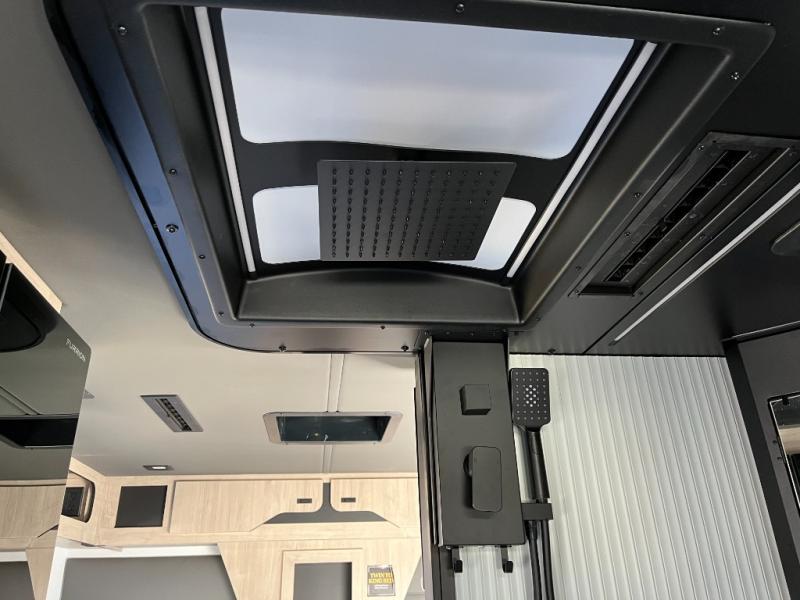 Step inside and feel instantly at home in a thoughtfully designed interior that maximizes every inch of space. The living area features versatile seating that converts for dining, lounging, or sleeping, surrounded by rich finishes, soft lighting, and a layout that feels open and inviting. The panoramic windows bring in abundant natural light and scenic views, making every stop feel like a retreat.
