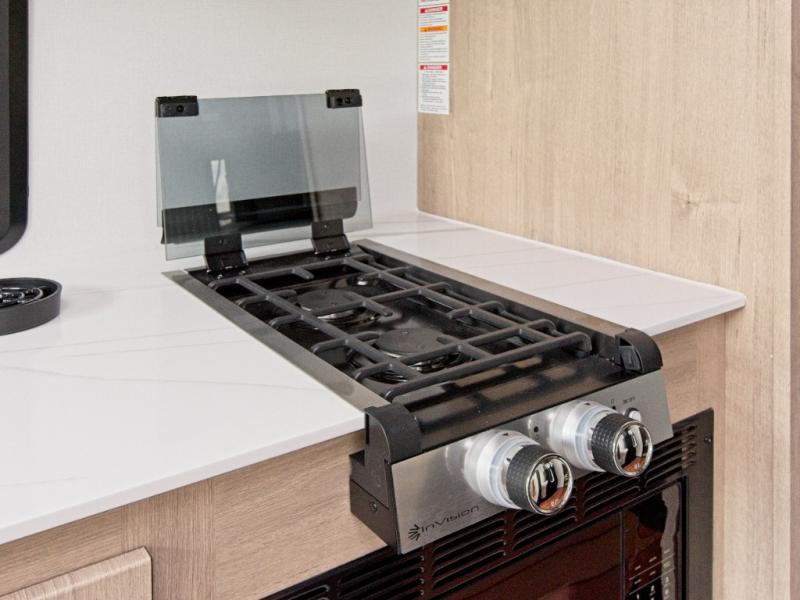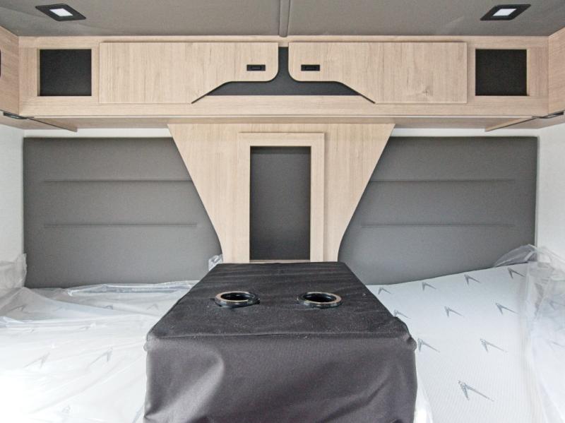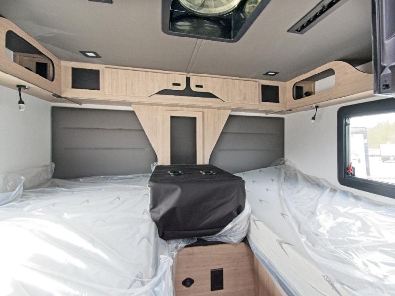 Perfect for couples or families who love to travel in style, this motorhome has everything you wish for in a coach. The rear twin beds convert to a king-sized bed, providing a spacious and comfortable sleeping area for two. The full bathroom is equipped with everything you need for a comfortable stay, providing a convenient spot to freshen up after a long day of exploring. The kitchen is equipped with a 10 cu refrigerator for ample storage, a microwave, and a two-burner cooktop for trying out any trending recipe. In addition, the pantry provides more storage for food and cookware.The 32” smart TVs in the bedroom and living room provide endless entertainment options, while the power seating ensures comfortable viewing angles. The bunk over the cab provides additional sleeping space for kids or adults, and the exterior TV offers an ideal spot to enjoy your favorite shows or sports teams while outdoors.