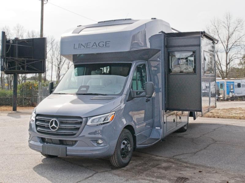 Grand Design's first motorized coach, the Lineage Series M is coming to you with luxurious features at a great value. This Class C diesel motorhome sits on a Mercedes-Benz sprinter chassis for quality and performance you can trust. True to Grand Design's foundation, the Lineage includes interior comforts, durable construction, innovative features, and attention to detail. The Series M Package includes natural teak wood grain, a Lineage Suspension Package, and more. There is also a Blackout Package with black aluminum wheels, a Chromeout Package with chrome aluminum wheels, plus additional packages to enhance your travel experience!