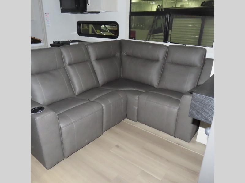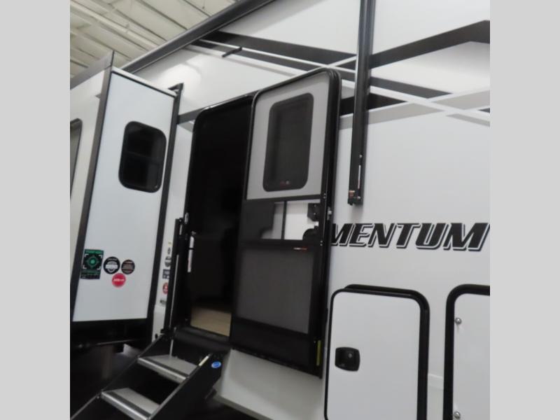 The Momentum fifth wheel toy haulers by Grand Design are built for four seasons of travel with your off-road toys and include luxurious accommodations throughout for extreme living! Each is constructed to a superior standard with the fully enclosed and heated underbelly and storage area, the 5-sided aluminum cage, and the triple insulated garage floor. The MORryde CRE3000 suspension system and rubber pin box, plus the upgraded axle hangers provide the performance and smooth towing you desire, while the interior offers luxury such as color changing LED accent lighting, hardwood cabinet doors with hidden hinges, and a central vacuum system. Each toy hauler also includes four packages, including the Garage Package with Tuff-Ply gas and oil-resistant flooring, the Weather-Tek Package with a Stealth AC System, and the Interior Luxury Package with solid surface countertops!