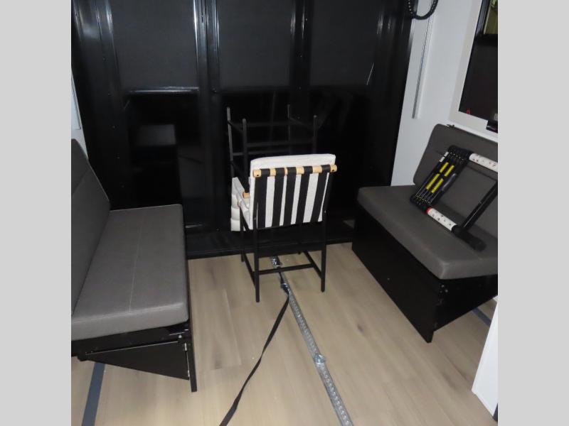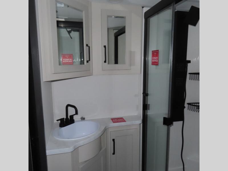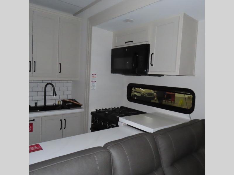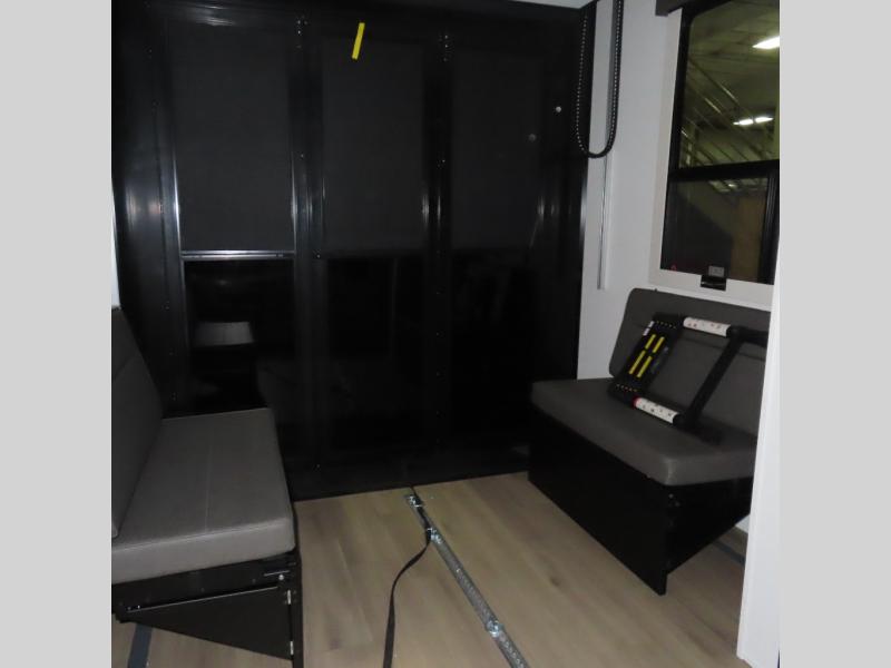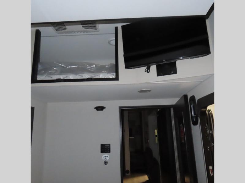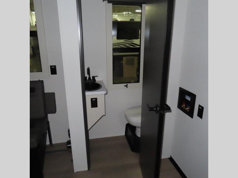 Spend your days at the campground kicking up mud with this toy hauler in tow! once you've unloaded your toys from the ramp door, you can use the 60 gallon fuel station to fill up and head out on a trail! The overhead bed provides a place for guests to sleep, and there is a Liftsuite System for more sleeping space if needed. There is even an optional half bath here if you choose to make this space more accommodating. Head to the middle kitchen and living area where you'll enjoy generous counter space to prep meals, a spacious 20 cu. ft. refrigerator, an L-shaped sofa with recline, plus a hybrid desk/dinette that will serve as a dining or working space. The dual entry bath creates a front master bedroom you are sure to love. There is a queen bed with an optional king bed, plenty of overhead storage, and a wardrobe slide to keep your things organized.
