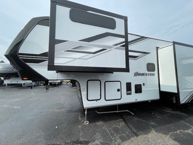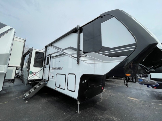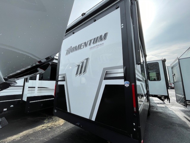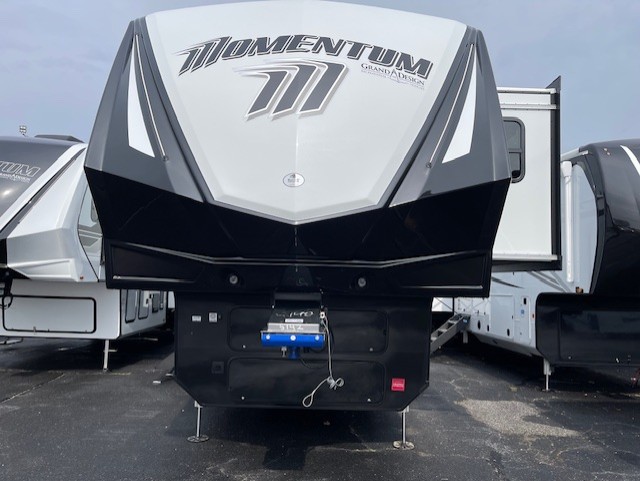 The Momentum fifth wheel toy haulers by Grand Design are built for four seasons of travel with your off-road toys and include luxurious accommodations throughout for extreme living! Each is constructed to a superior standard with the fully enclosed and heated underbelly and storage area, the 5-sided aluminum cage, and the triple insulated garage floor. The MORryde CRE3000 suspension system and rubber pin box, plus the upgraded axle hangers provide the performance and smooth towing you desire, while the interior offers luxury such as color changing LED accent lighting, hardwood cabinet doors with hidden hinges, and a central vacuum system. Each toy hauler also includes four packages, including the Garage Package with Tuff-Ply gas and oil-resistant flooring, the Weather-Tek Package with a Stealth AC System, and the Interior Luxury Package with solid surface countertops!