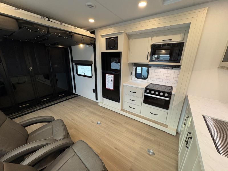 Are you looking for adventure and fun? The Momentum G-Class toy hauler by Grand Design will help you find it! You can explore during any season you choose with the Insulation Package that includes a heated and enclosed underbelly with suspended tanks, a high-capacity furnace, a moisture barrier floor enclosure, and cabinet-mounted heat ducts. Each model includes a high capacity water pump, a dovetail rear end, and 2,500-LB tie-downs anchored into the chassis. Throughout the Momentum G-Class interior, you'll enjoy many comfortable features like large panoramic windows, a shower skylight, USB chargers in the bedroom, and residential cabinetry.
