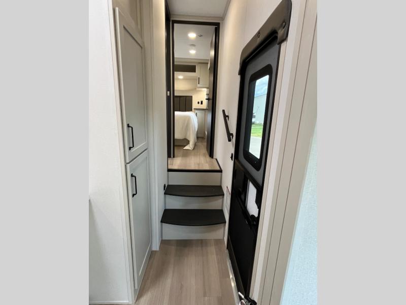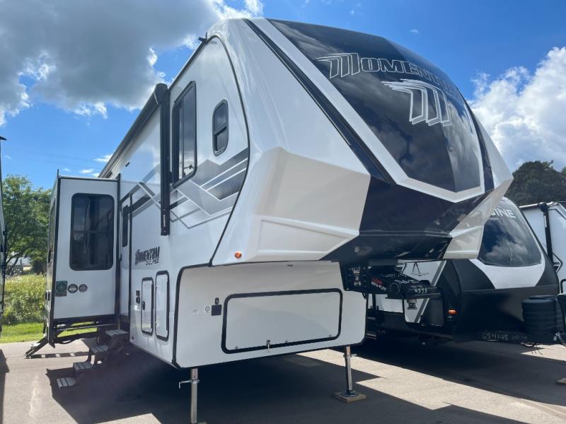 Are you looking for adventure and fun? The Momentum G-Class toy hauler by Grand Design will help you find it! You can explore during any season you choose with the Insulation Package that includes a heated and enclosed underbelly with suspended tanks, a high-capacity furnace, a moisture barrier floor enclosure, and cabinet-mounted heat ducts. Each model includes a fuel station with an interior and exterior gauge, a dovetail rear rend, and 2,500-LB tie-downs anchored into the chassis. Throughout the Momentum G-Class interior, you'll enjoy many comfortable features like large panoramic windows, a shower skylight, USB chargers in the bedroom, and residential cabinetry.