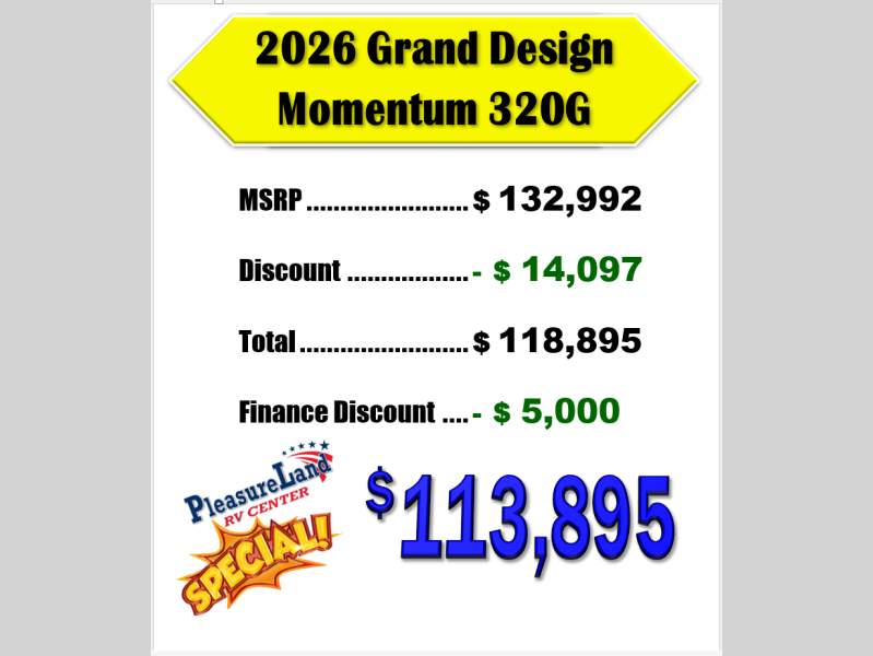 New 2026 Grand Design Momentum G-Class 320G Toy Hauler Fifth Wheel