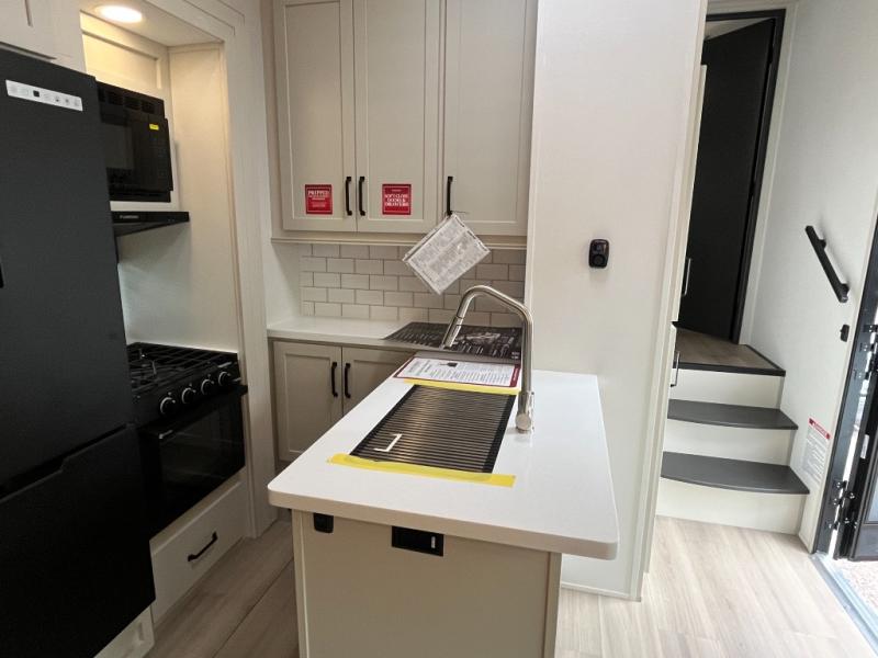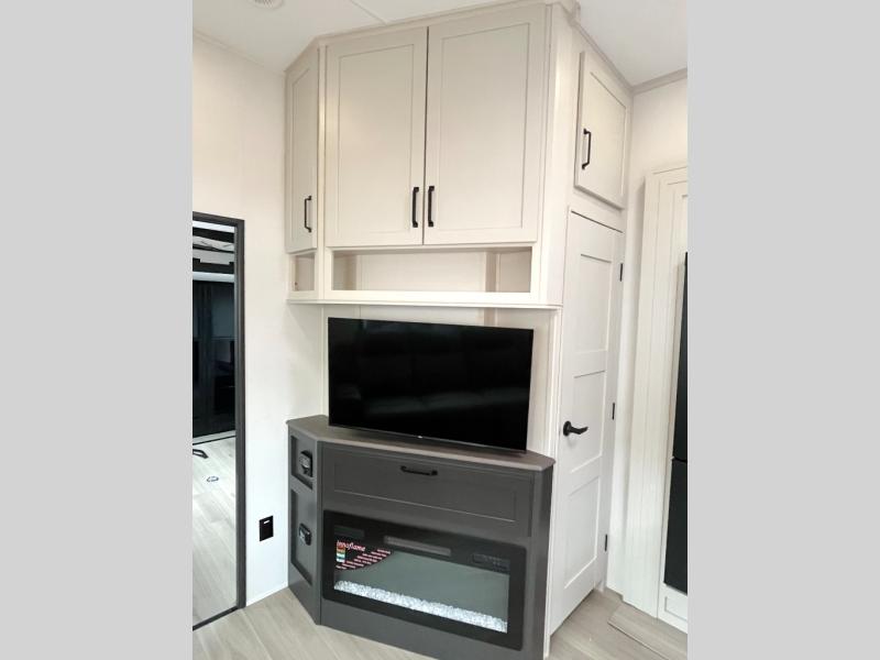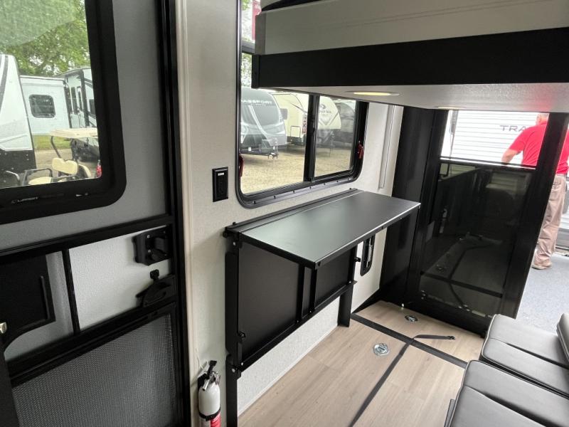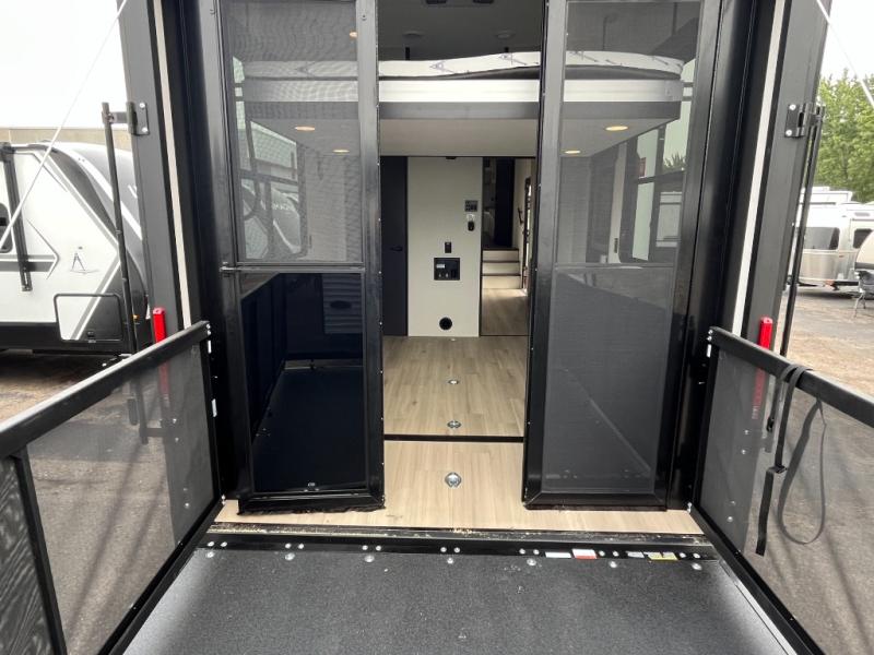 Are you looking forward to arriving at your destination, unloading your toys from an 11' separate garage, and heading out to the dunes? You can return to this Momentum G-Class toy hauler afterwards to find the convenience of having a full and half bath, two entry doors, and a loft bed. The rear ramp door can even be converted into a patio, plus there are exterior speakers to keep the party going! You will also appreciate the separate living area with a fireplace, theater seating slide, and full kitchen amenities. The front bedroom offers an escape to rest and relax for the next ride. Take a look outside and inside because you will be sold!