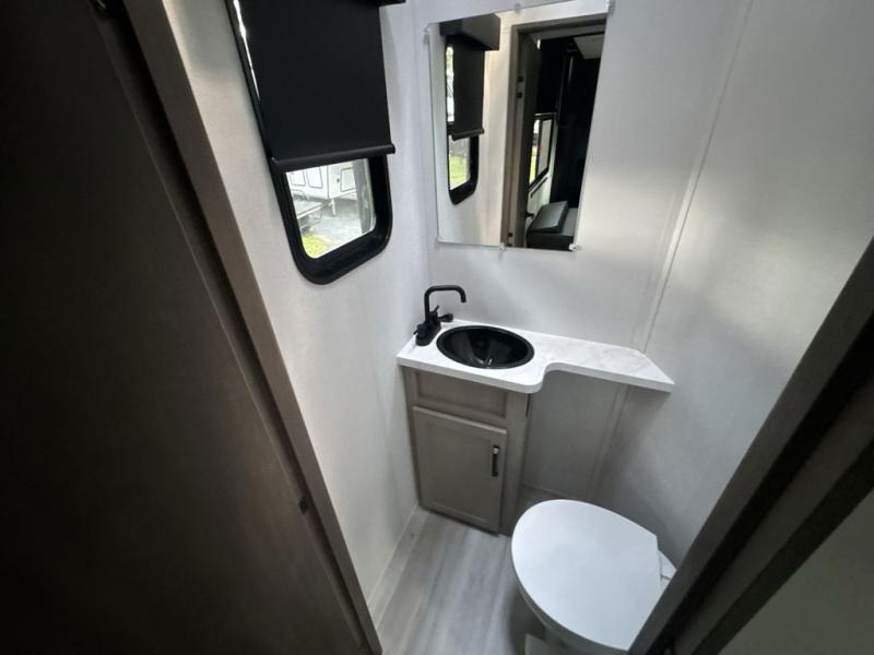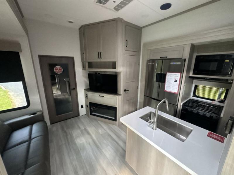 Are you looking forward to arriving at your destination, unloading your toys from an 11' separate garage, and heading out to the dunes? You can return to this Momentum G-Class toy hauler afterwards to find the convenience of having a full and half bath, two entry doors, and a loft bed. The rear ramp door can even be converted into a patio, plus there are exterior speakers to keep the party going! You will also appreciate the separate living area with a fireplace, theater seating slide, and full kitchen amenities. The front bedroom offers an escape to rest and relax for the next ride. Take a look outside and inside because you will be sold!